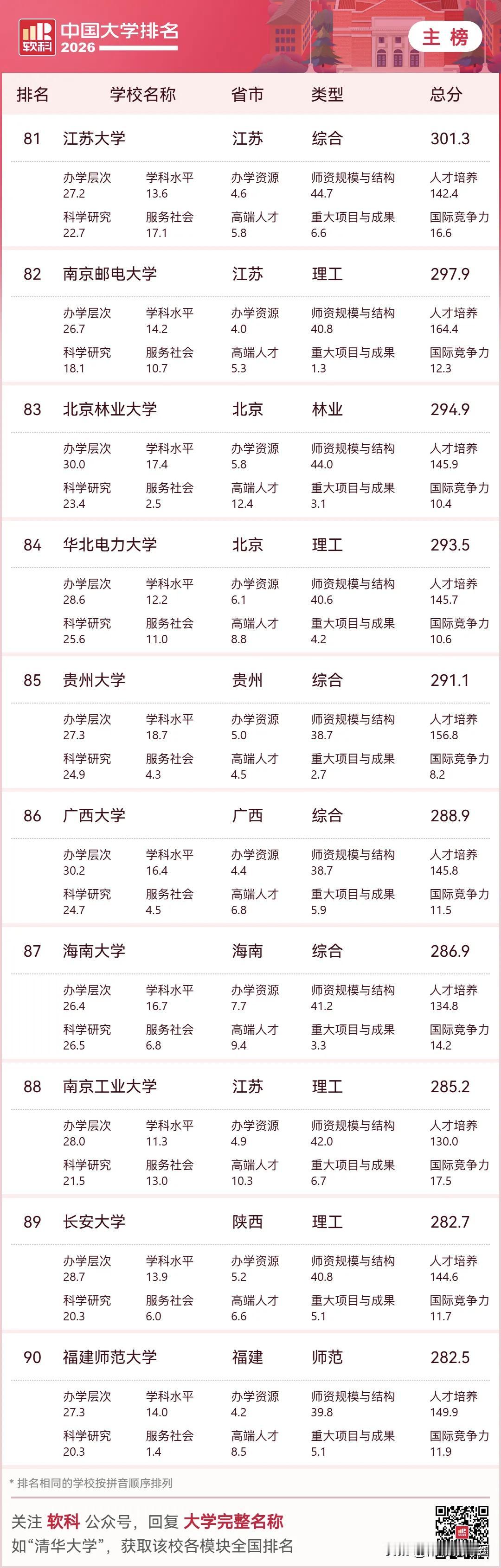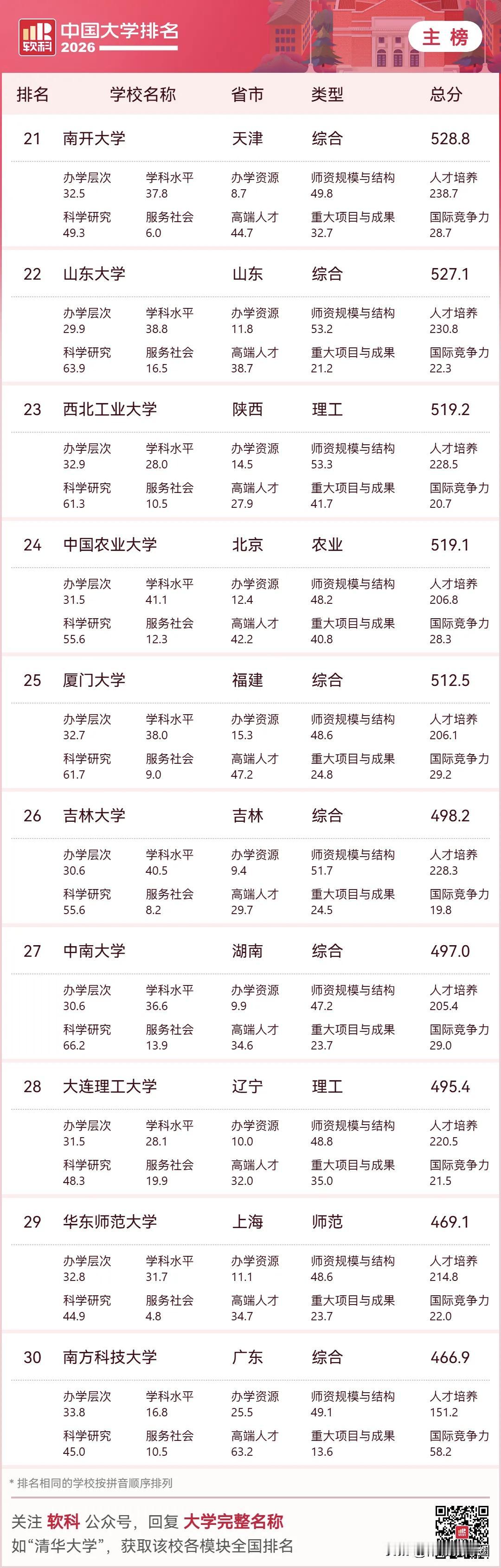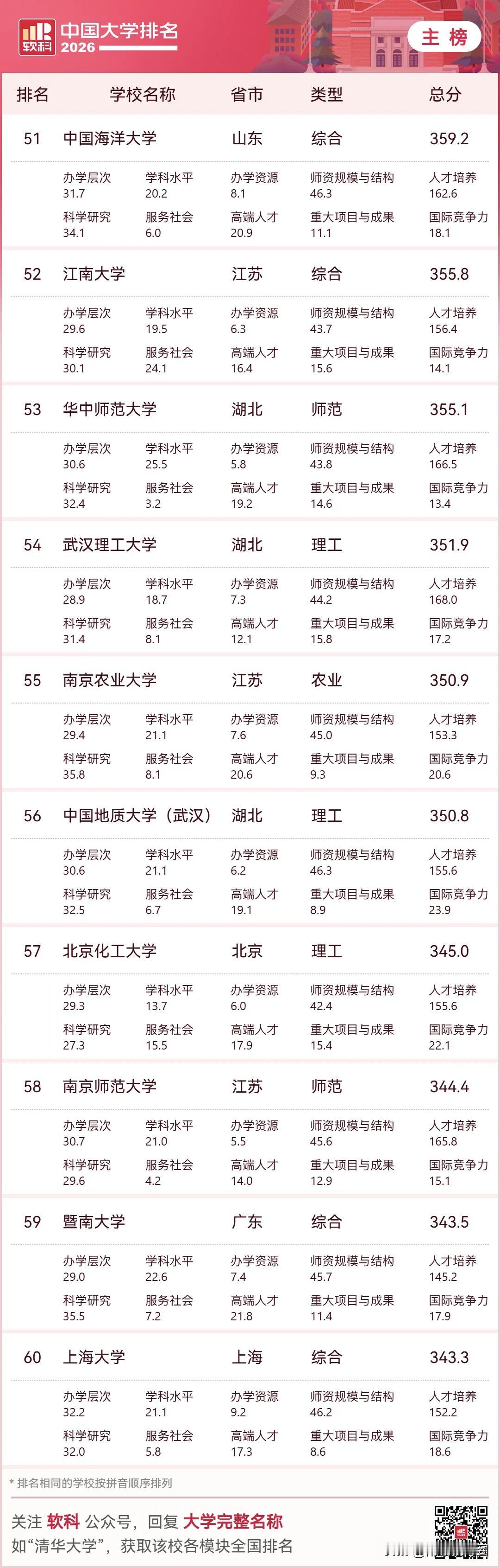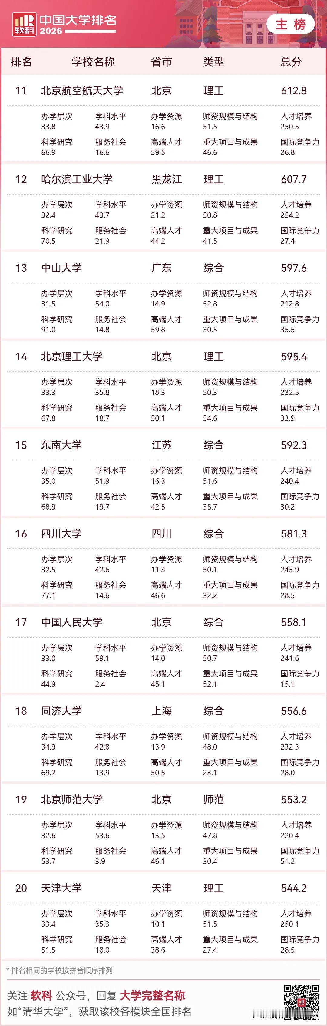 刚刚,2026年4月15日高等教育专业评价机构软科今日正式发布“2026软科中国大学排名”。2026年软科中国大学排名出炉!