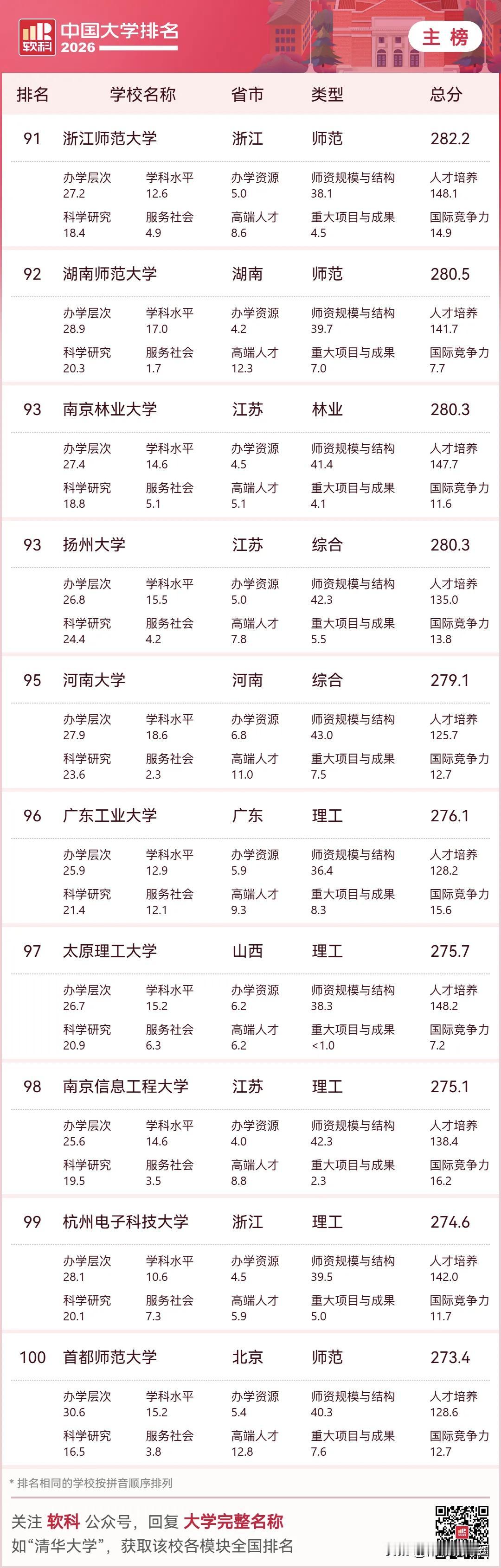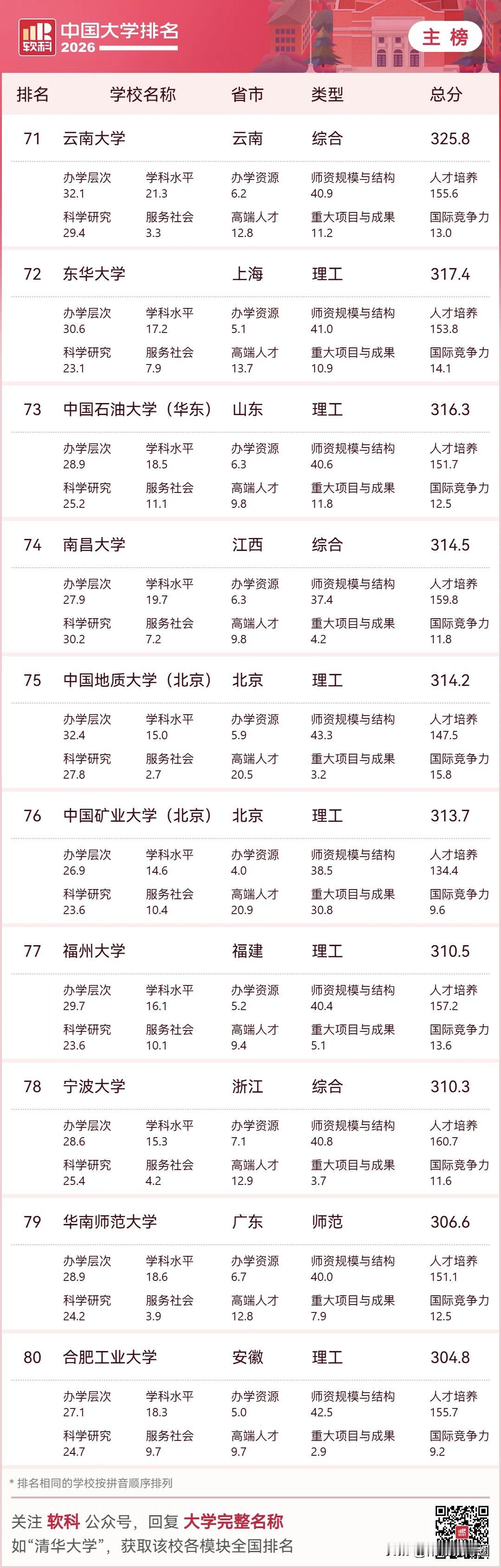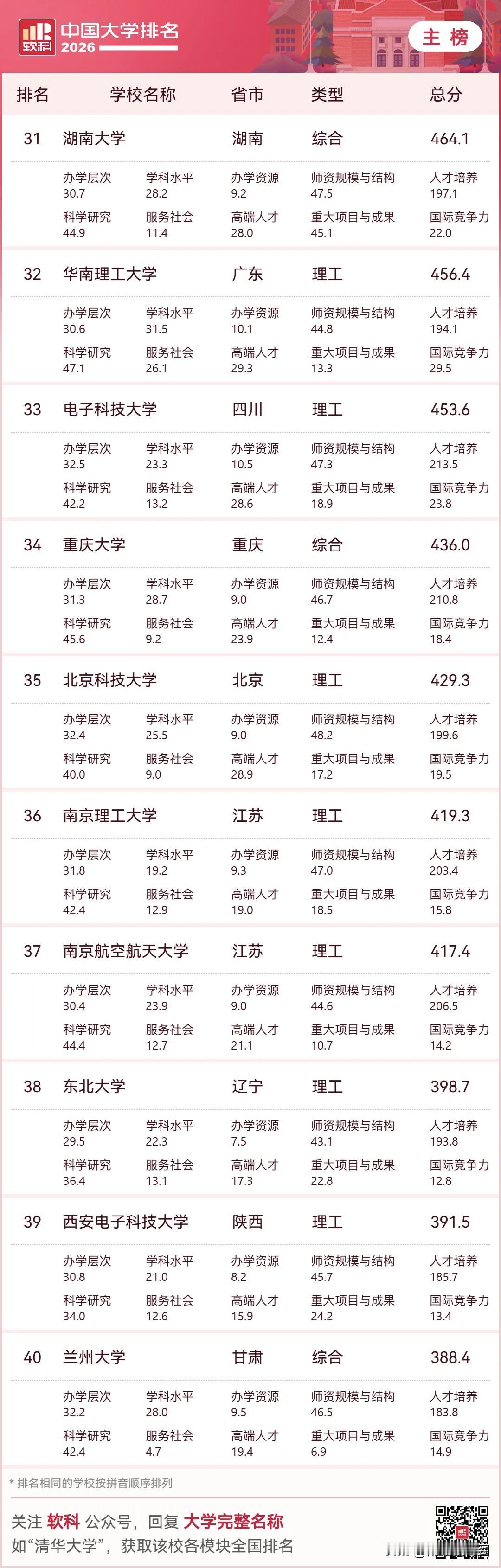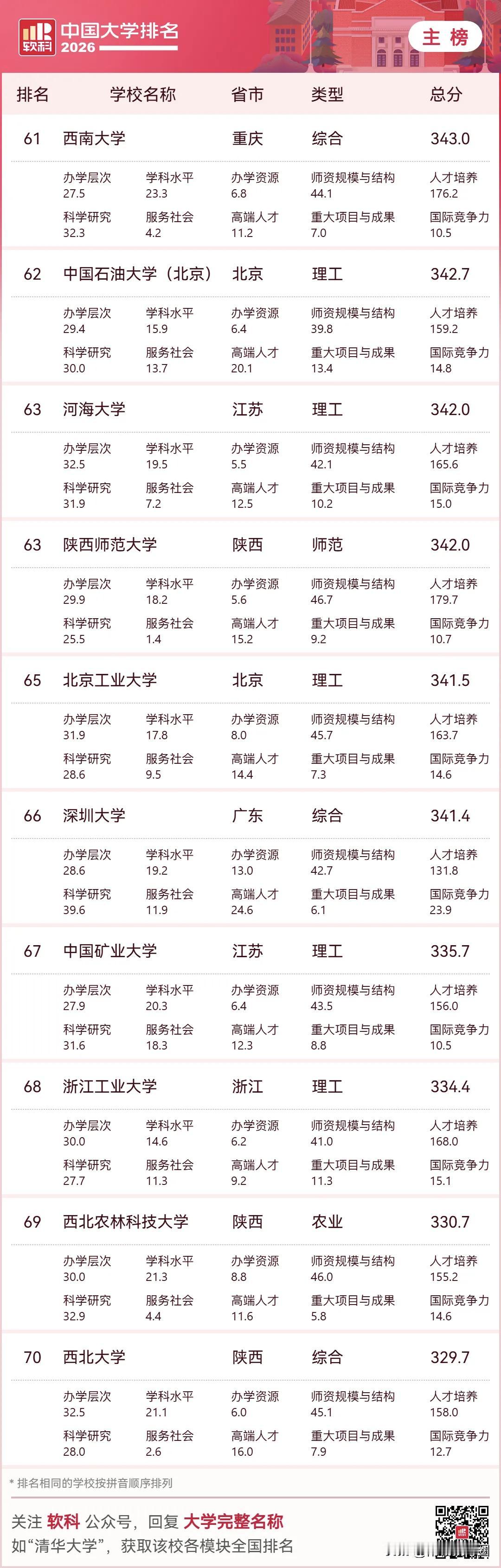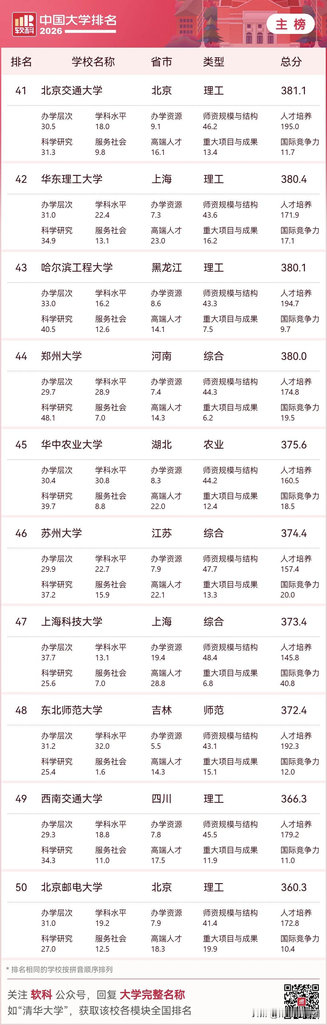 刚刚,2026年4月15日高等教育专业评价机构软科今日正式发布“2026软科中国大学排名”。2026年软科中国大学排名出炉!