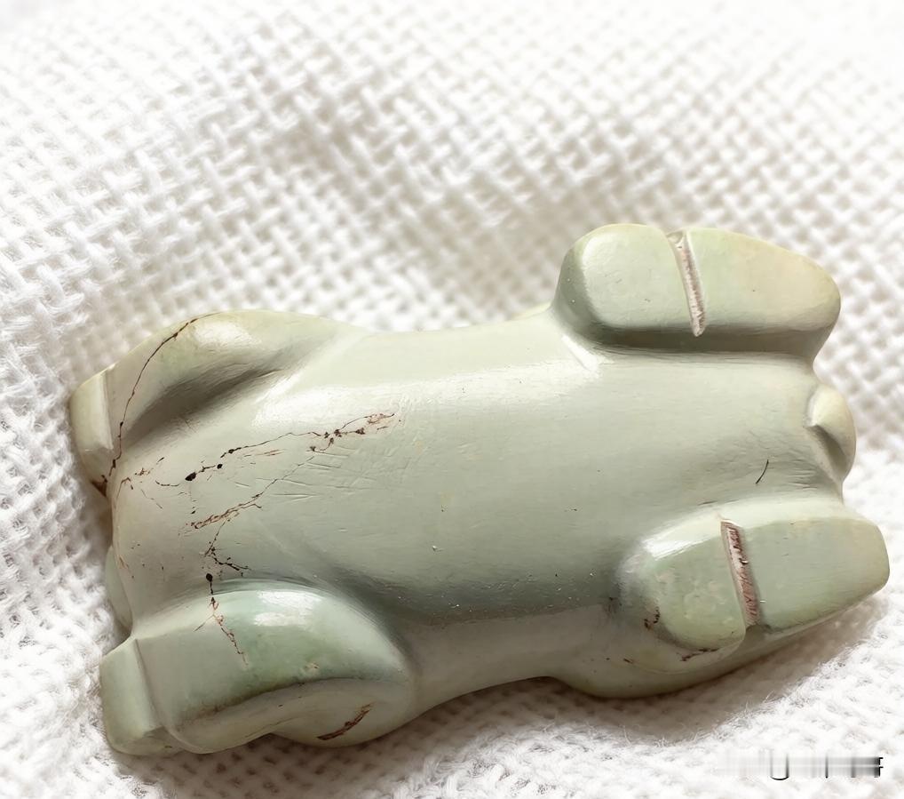 通体呈现出一种淡雅的青绿色,质地细腻。最迷人的是表面那些自然分布的裂纹与沁色,它们不是瑕疵,而是时间的指纹。每一道纹路都像是在诉说着过往的故事,记录着它在地下沉睡或是被人珍藏的漫长时光。这种天然的沧桑感,是任何现代工艺都无法完美复刻的。