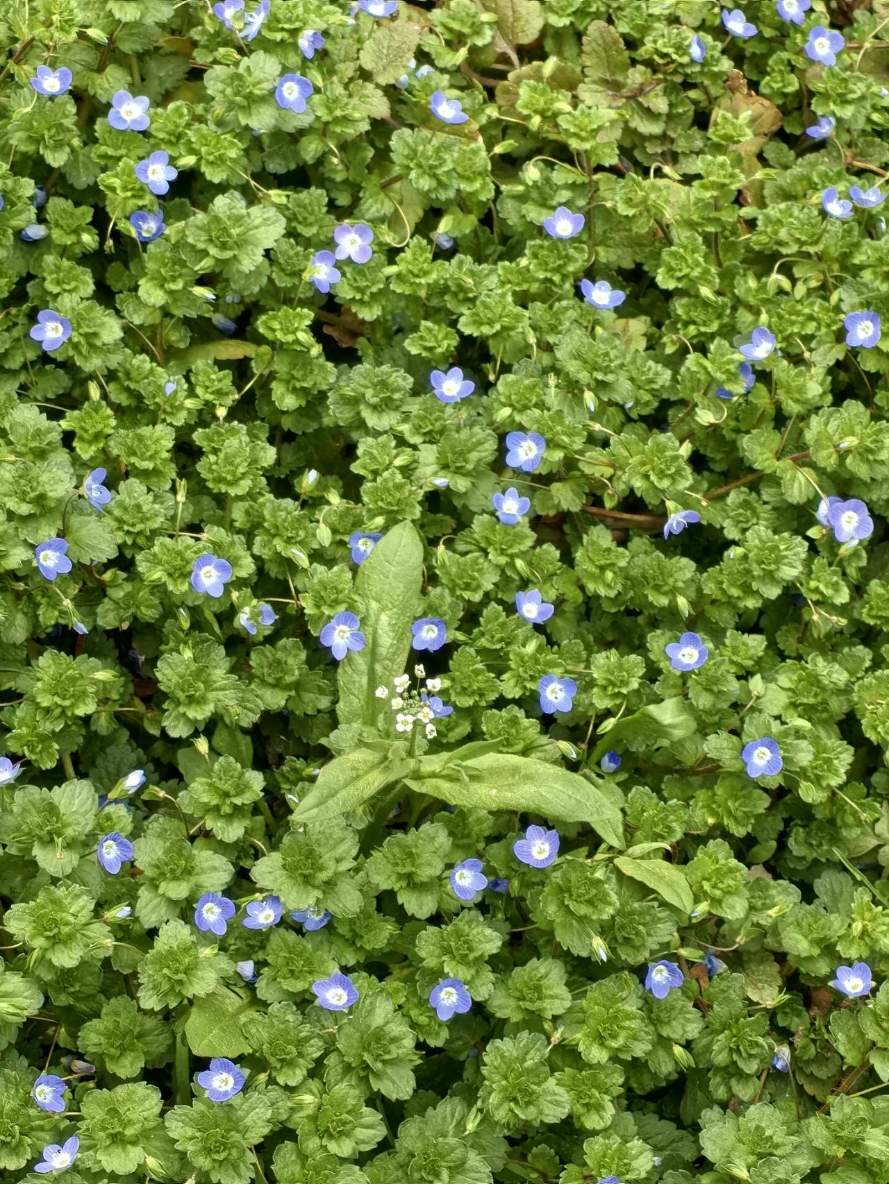早春,迎着较冷的春风,有一种青草绿遍沟沟坎坎。仲春始,便开出如梦如幻的蓝色小花,一片一片连成片,在春风里眨着眼睛,这便是阿拉伯婆婆纳。