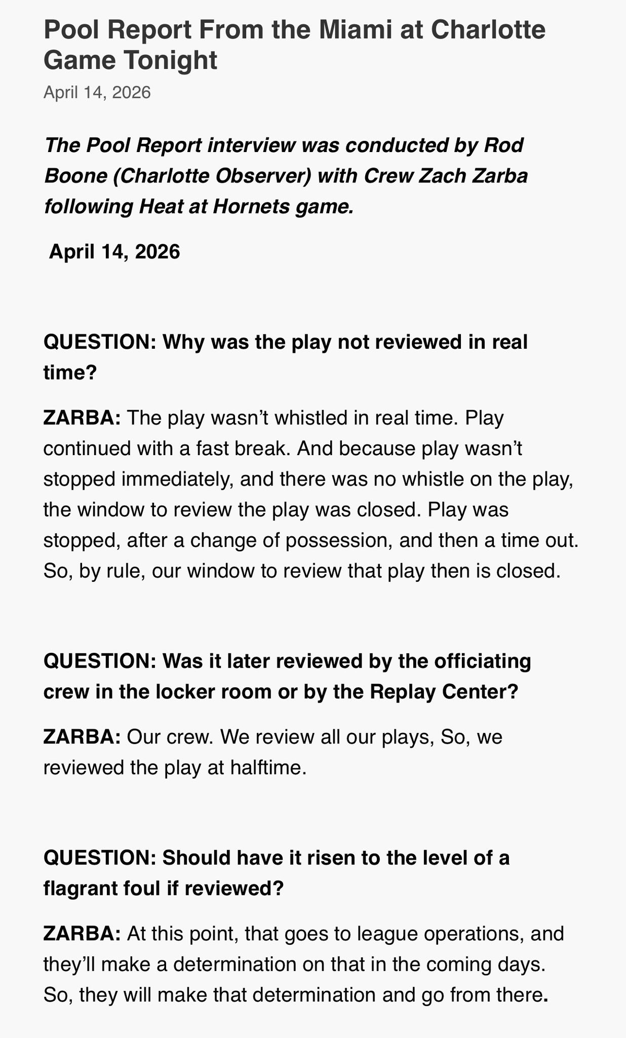 “现在,这取决于联盟的裁定,他们会在接下来几天做出判定。”NBA附加赛热火vs黄蜂