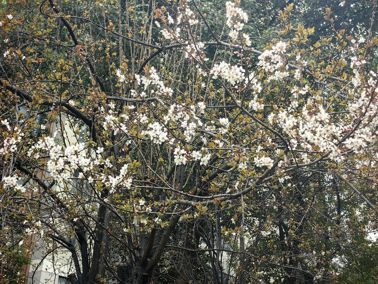 之前一直以为这是梅花,看了树上的标识,才知道原来这种树叫“红叶李”。