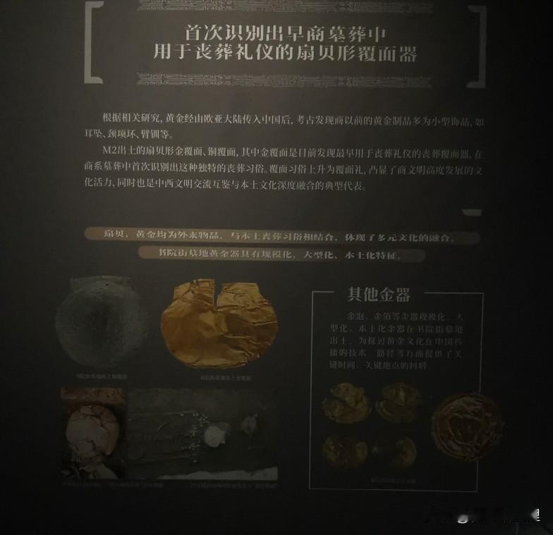 郑州考古博物馆,收藏有多件商代金器实物,但是展板介绍却提到“黄金自西方传入中国”。