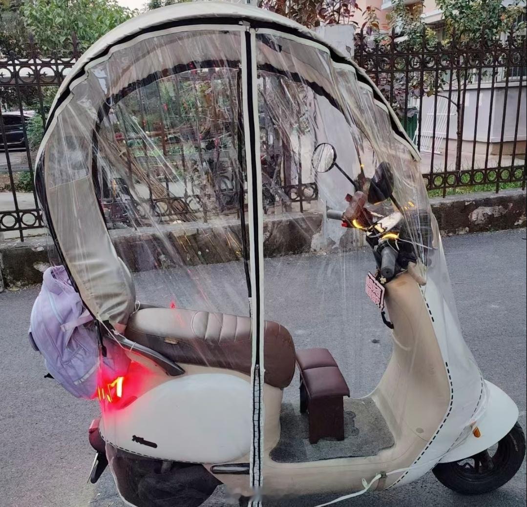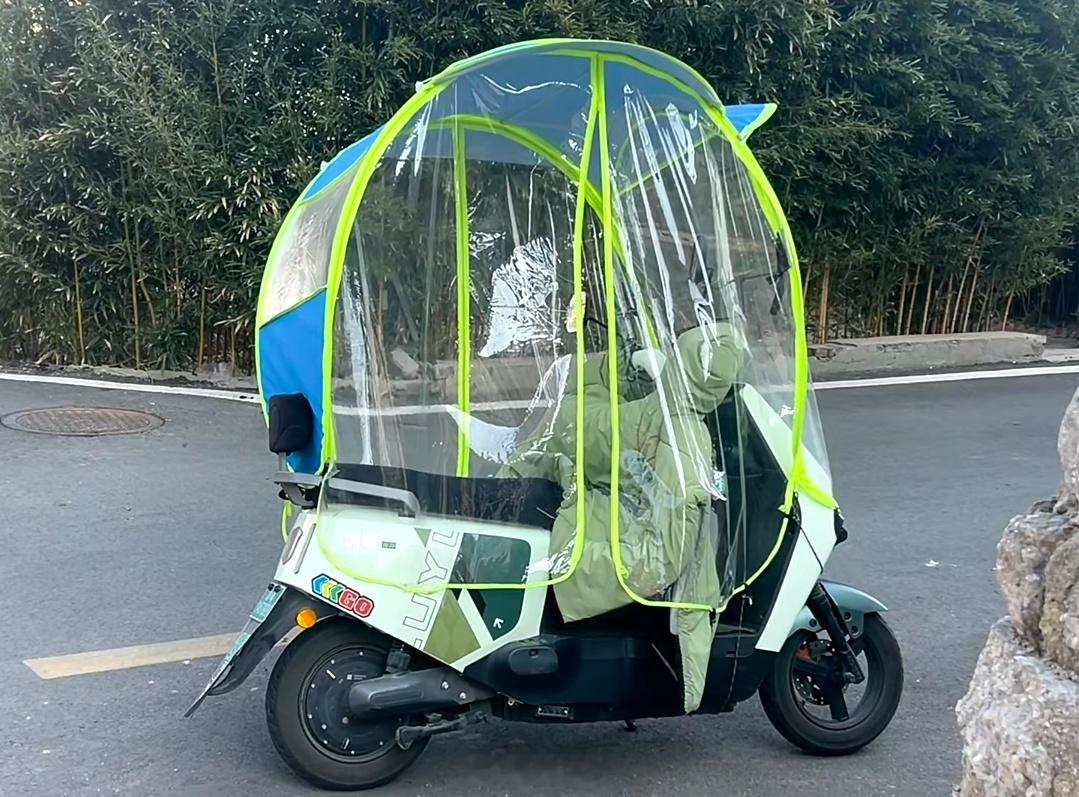 两轮电动车搭雨棚太危险了吧,来一阵风就翻了