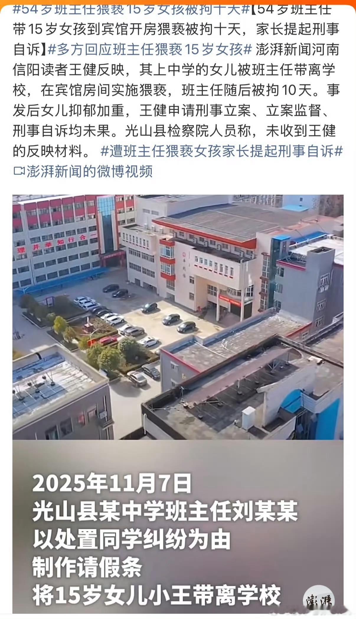 班主任开房猥亵学生需要提级调查班主任开房猥亵学生为何只是行政处罚老师开房猥亵女学生理应清理出校园班主任带未成年学生到宾馆猥亵,最终只被行政拘留10日,没被追究刑事责任,看似处罚过轻,核心原因是法律标准和证据不足。从法律规定来看,猥亵行为分两种:情节轻微的,按《治安管理处罚法》给行政拘留等行政处罚;只有用暴力、胁迫等强制手段实施猥亵,才构成刑事犯罪,要判刑。本案里,警方认定:现有证据只能证明班主任有不当肢体接触,但没有确凿证据证明他使用了暴力、胁迫手段,达不到刑事犯罪的立案标准,只能按行政违法处罚。加上事件发生在宾馆封闭空间,缺少监控、目击证人等直接证据,未成年人的心理畏惧、后续自残等伤害,也没能形成完整的刑事证据链,无法定罪量刑。但这一结果引发巨大争议:班主任利用教师身份,刻意带学生到私密场所实施侵害,主观恶意极大,对孩子造成了严重心理创伤,仅行政处罚力度太轻,完全没体现对未成年人、对校园侵害的零容忍,也暴露出此类案件证据认定、处罚力度上的漏洞。