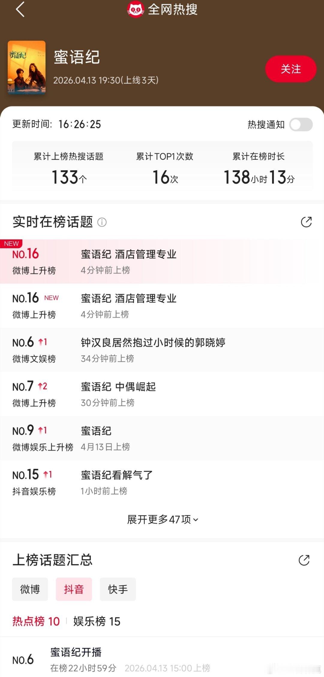 蜜语纪 前两天走势接近老舅,不过老舅是没啥推流和站内待遇的分帐剧,两者评价标准不同。蜜语纪双平台顶级站内待遇,推流宣发也不少,前期低关注度,都是开播后推的。所以要求自然不能是那种要啥啥没有的中偶的标准,比如年初的夜色正浓。当然走势在今年一片血扑剧坠机剧中很与众不同,对比之下很容易给人一种它很牛比的错觉。尤其显得冰湖重生的笑话更大了