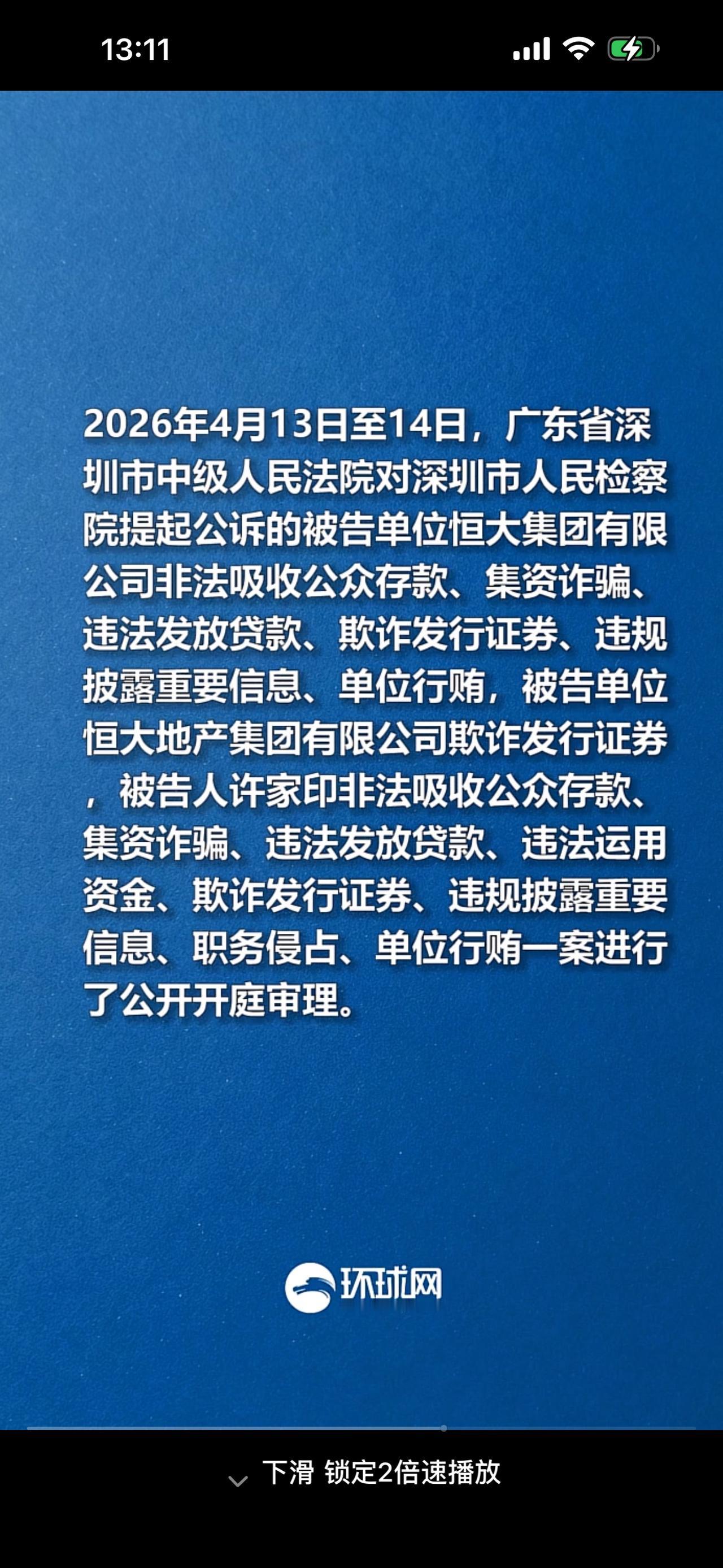4月13号到14号,深圳中院公开审了恒大集团、恒大地产还有许家印的案子,非法吸存、集资诈骗、欺诈发行证券……一堆罪名列出来,看得人头皮发麻。庭审上,许家印当庭就认罪悔罪了,法庭择期宣判。