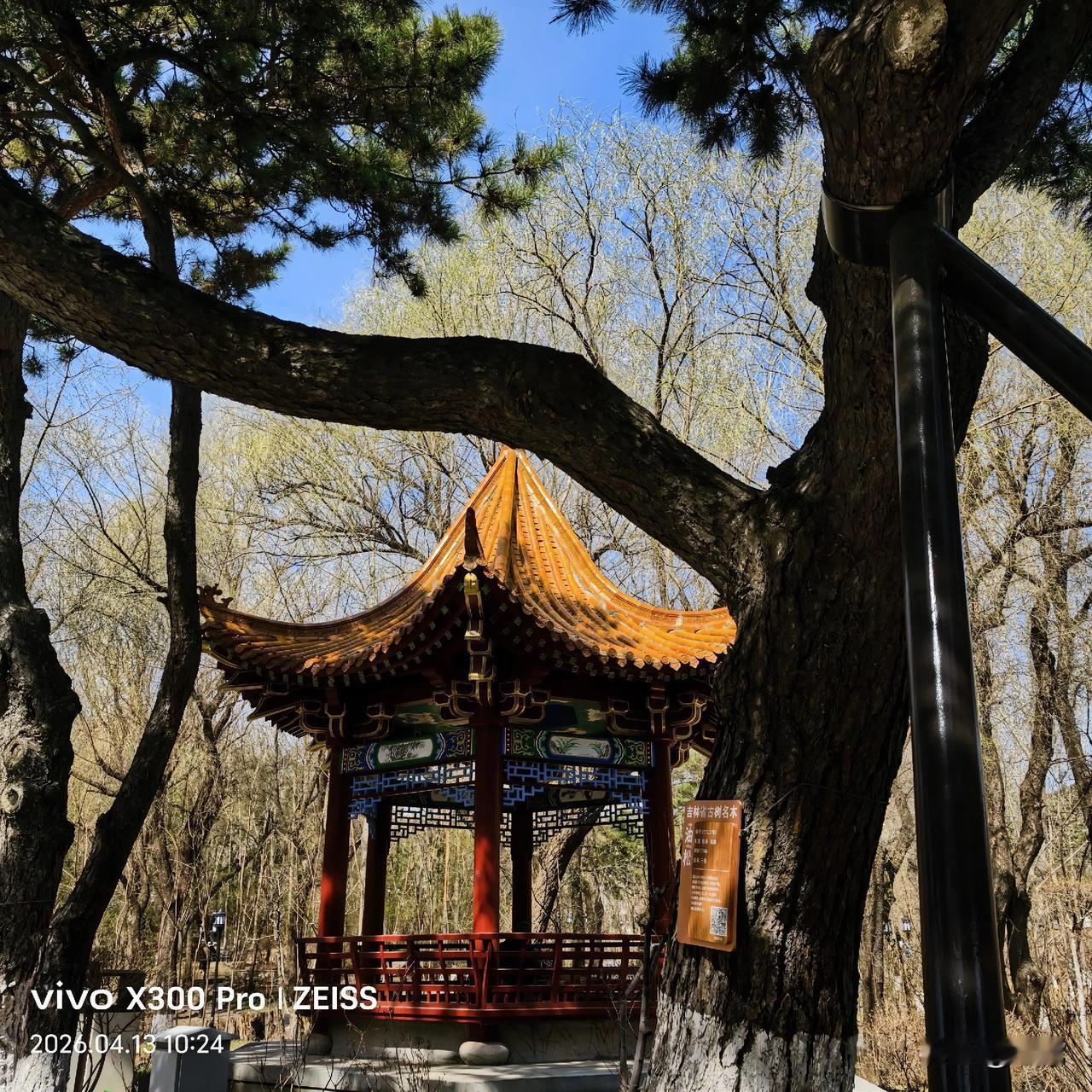 凉亭是“二栋”前面的建筑,松苑宾馆院内古树参天,有好多棵百年松树,柳树,石砖铺的小路,小桥流水,安静优雅,值得体验。