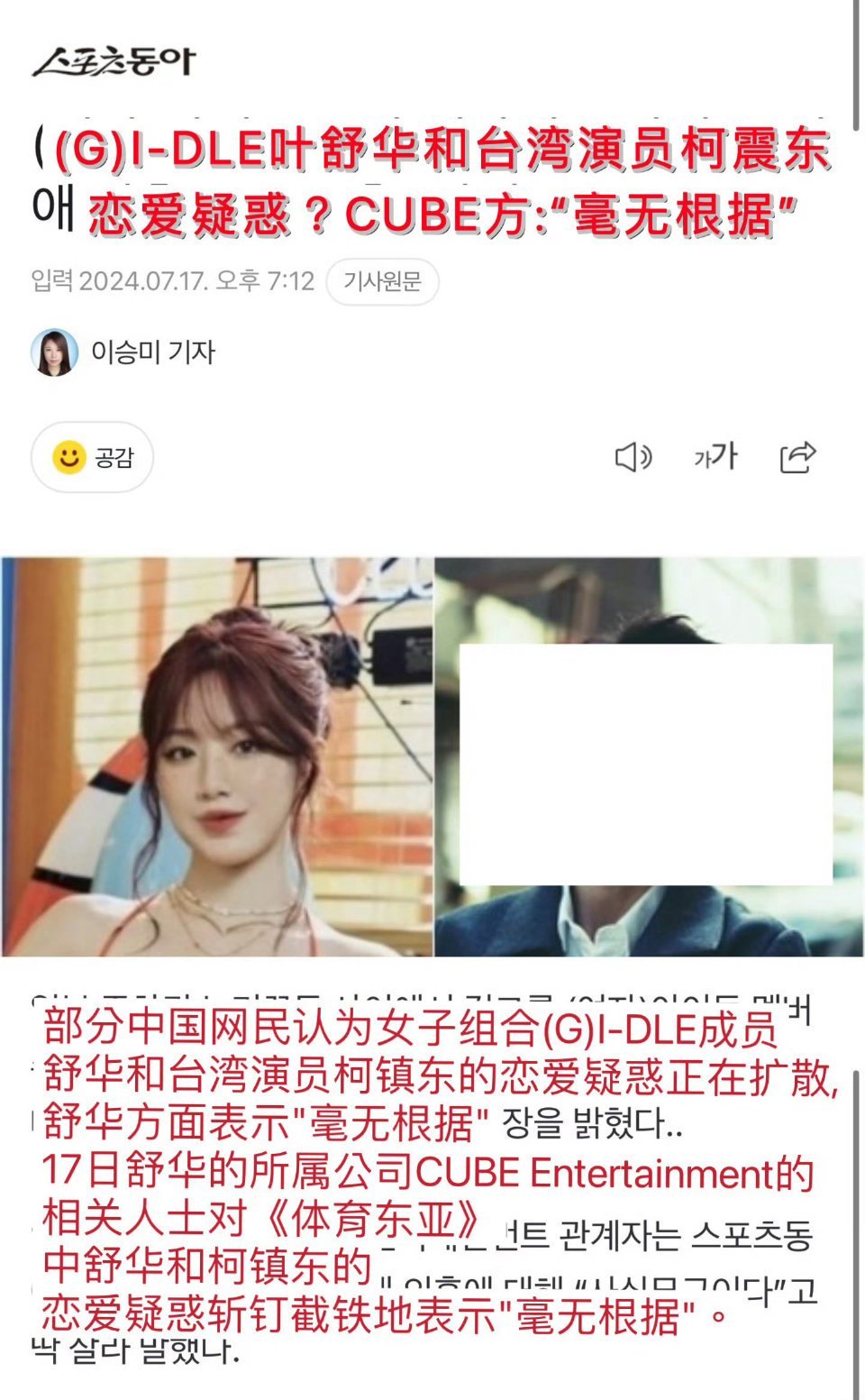 叶舒华柯震东恋情时间线叶舒华柯震东绯闻时间线叶舒华恋情 绯闻起因(2024年6–7月)6月:叶舒华回台,随陶晶莹聚餐偶遇柯震东生日派对,同框合照流出,引发初步猜测。7月16日:叶舒华IG发照配文「Hey~Iloveyou」,柯震东留言3个微笑表情(后删除),恋爱传闻发酵。📢 双方&公司回应CUBE娱乐(7月17日):官方声明「恋爱传闻毫无事实根据」,直接否认。柯震东(7月17日):出席活动称「只是路过留言,造成困扰很抱歉」;曾因网友骂战爆粗、取关叶舒华。叶舒华(7月18日):IG限时动态发文,未直接否认,仅劝「无恶意别来乱」,表达对传闻的不快。陶晶莹:解释是聚餐偶遇,并非刻意参加生日会。