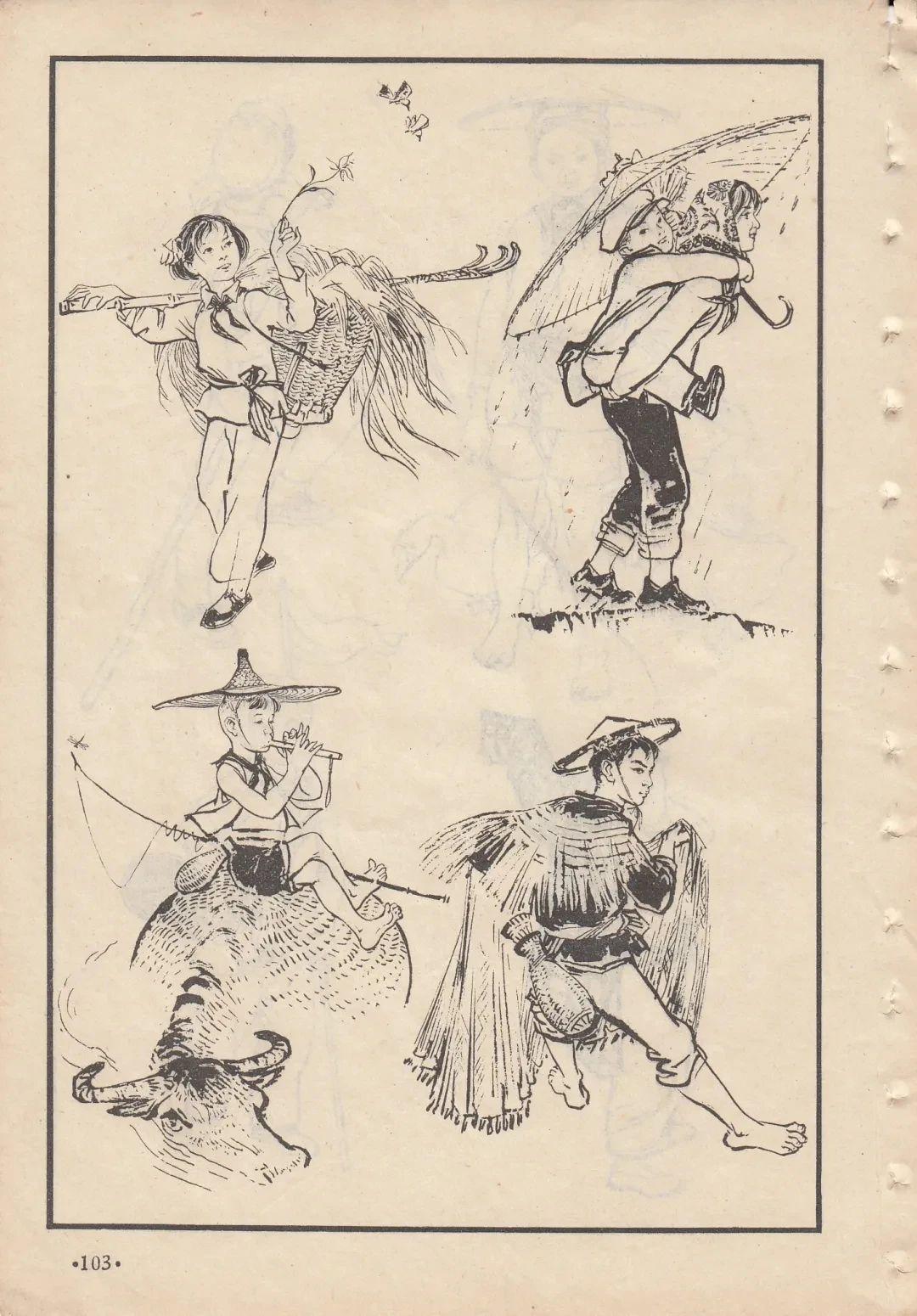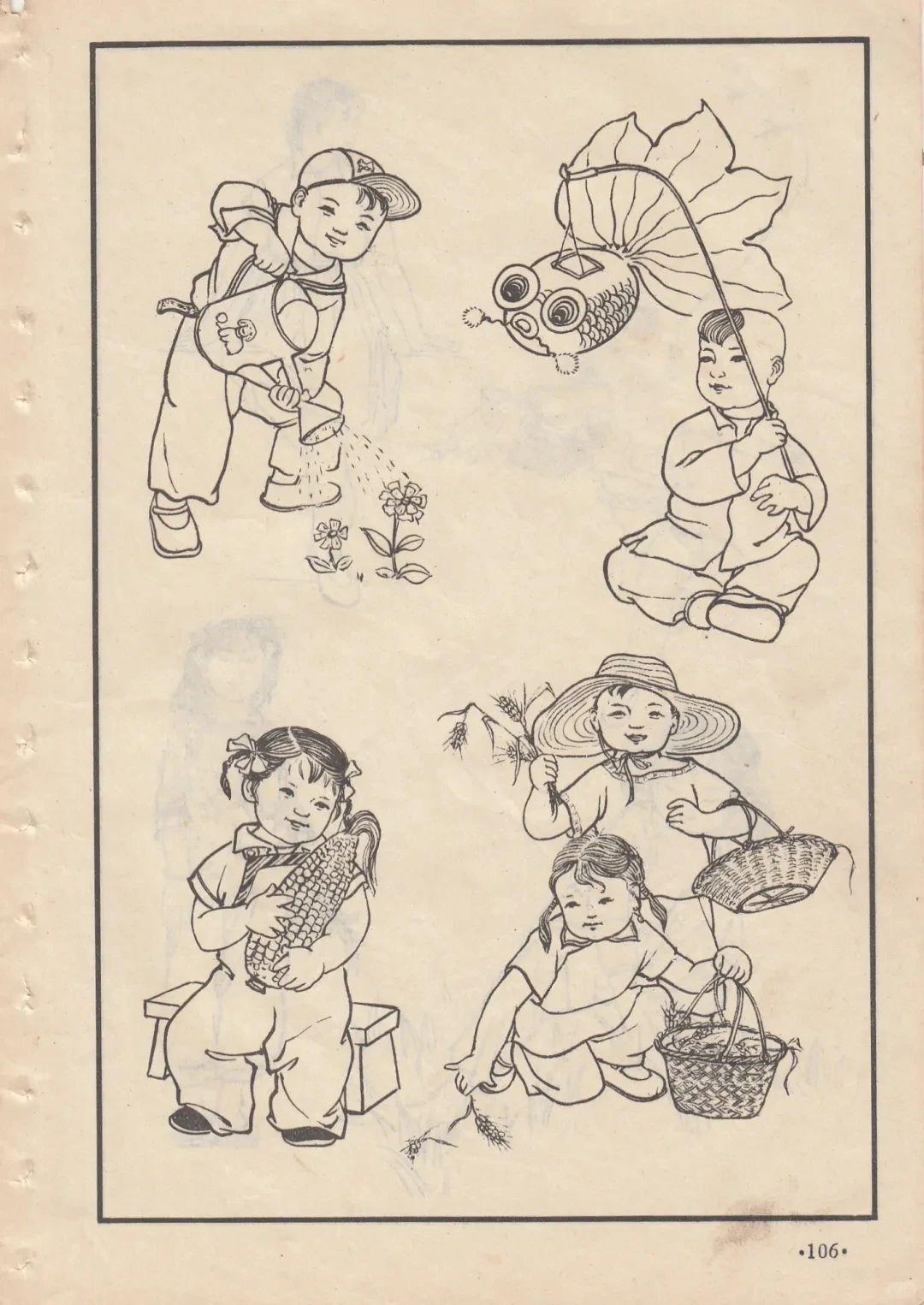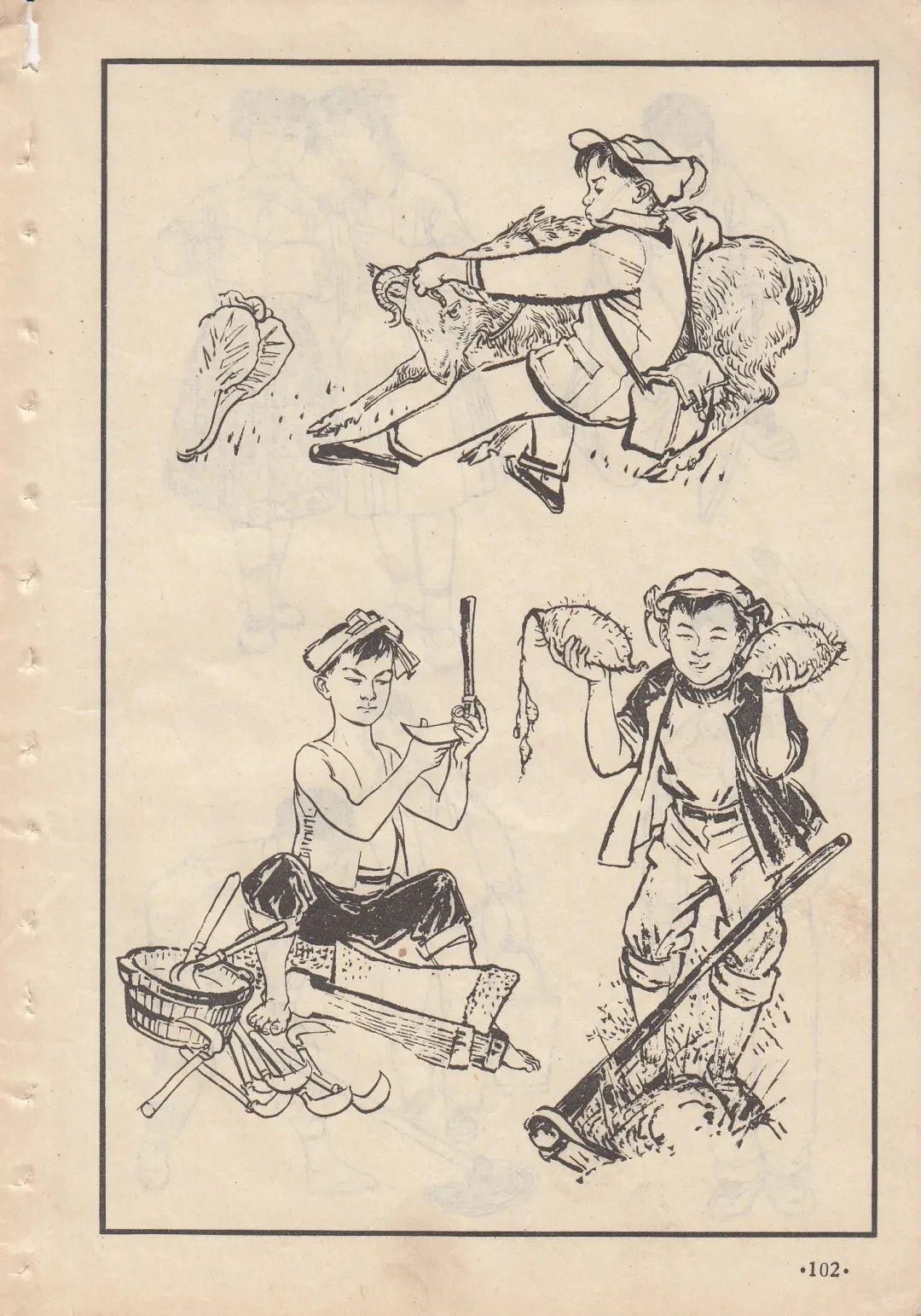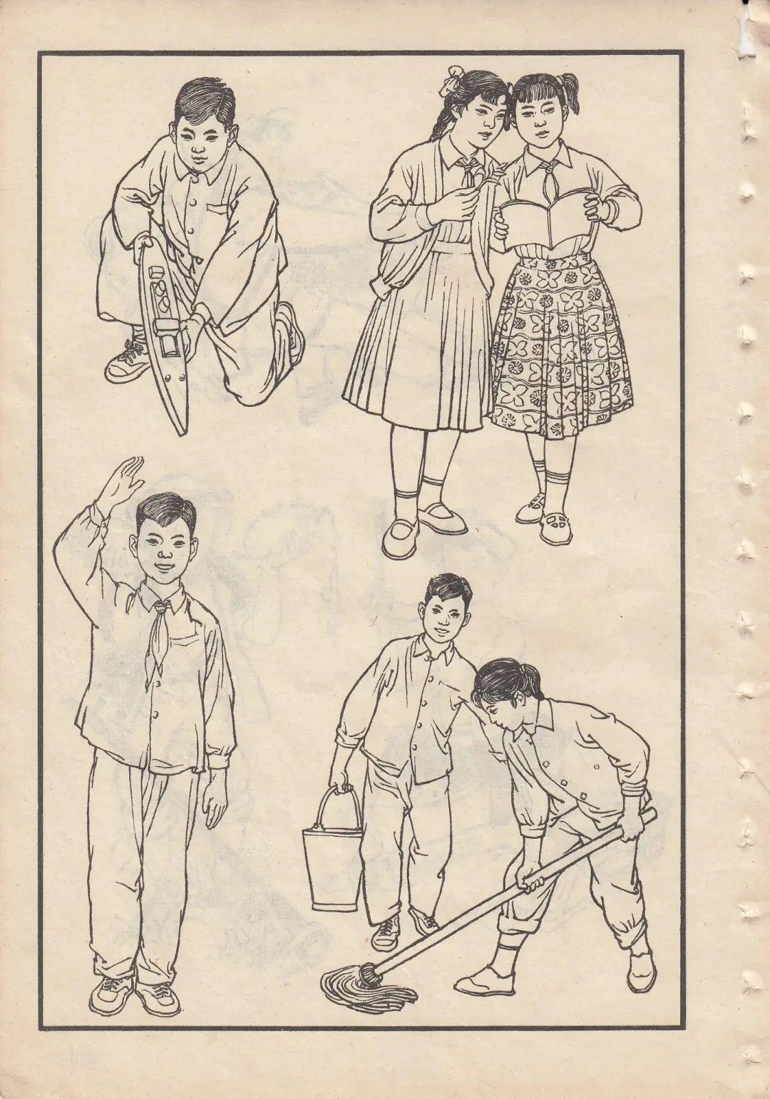 六七十年代的线描人物画,年代感满满,收录于《人物画参考资料》,适用于美术学习与创