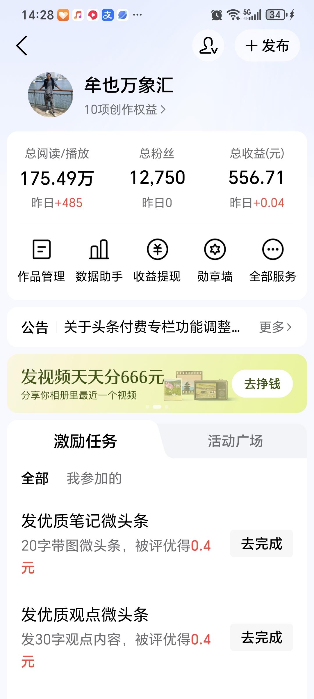 今天发现在头条己写370多条,一看收入550多元!