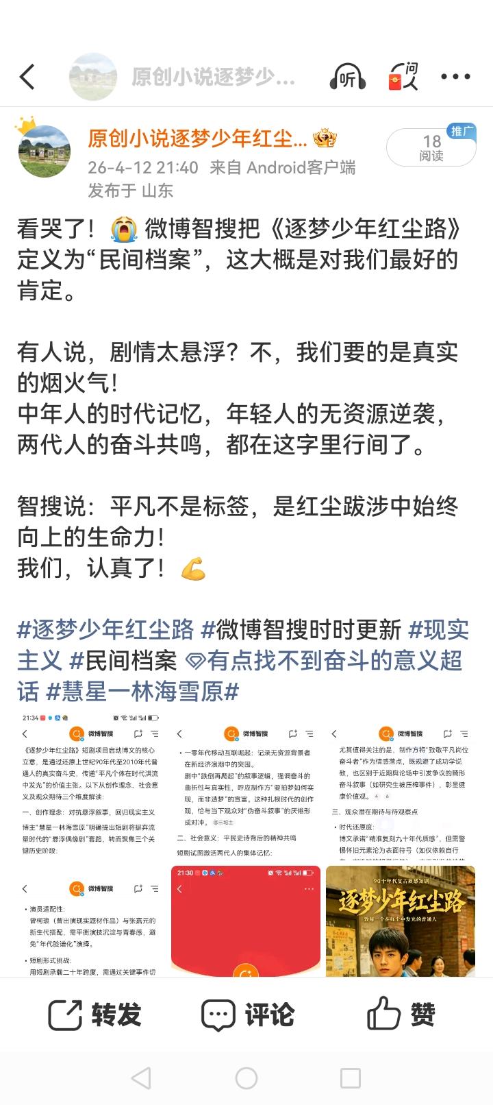 看哭了!😭 微博智搜把《逐梦少年红尘路》定义为“民间档案”,这大概是对我们最好的肯定。