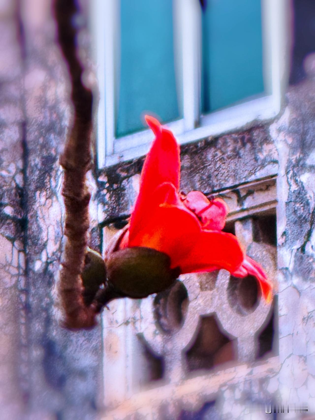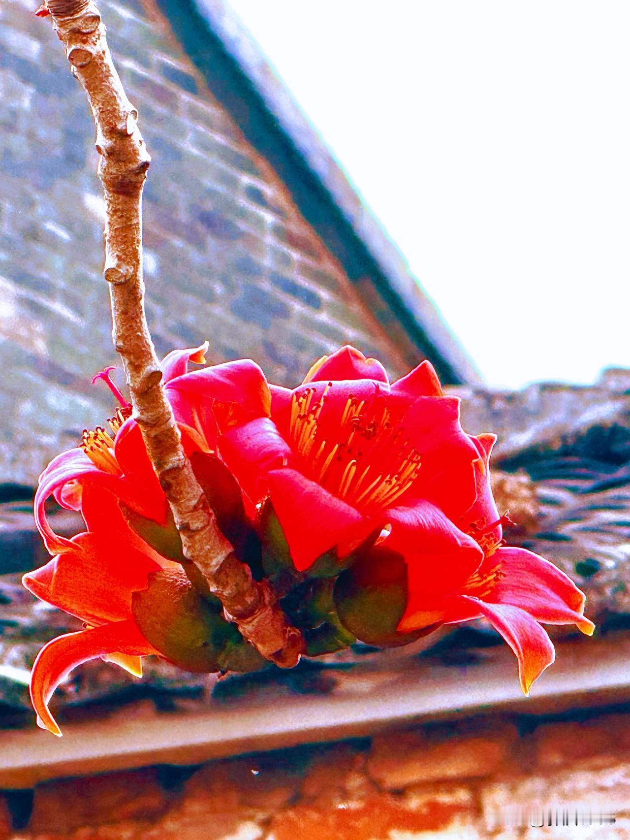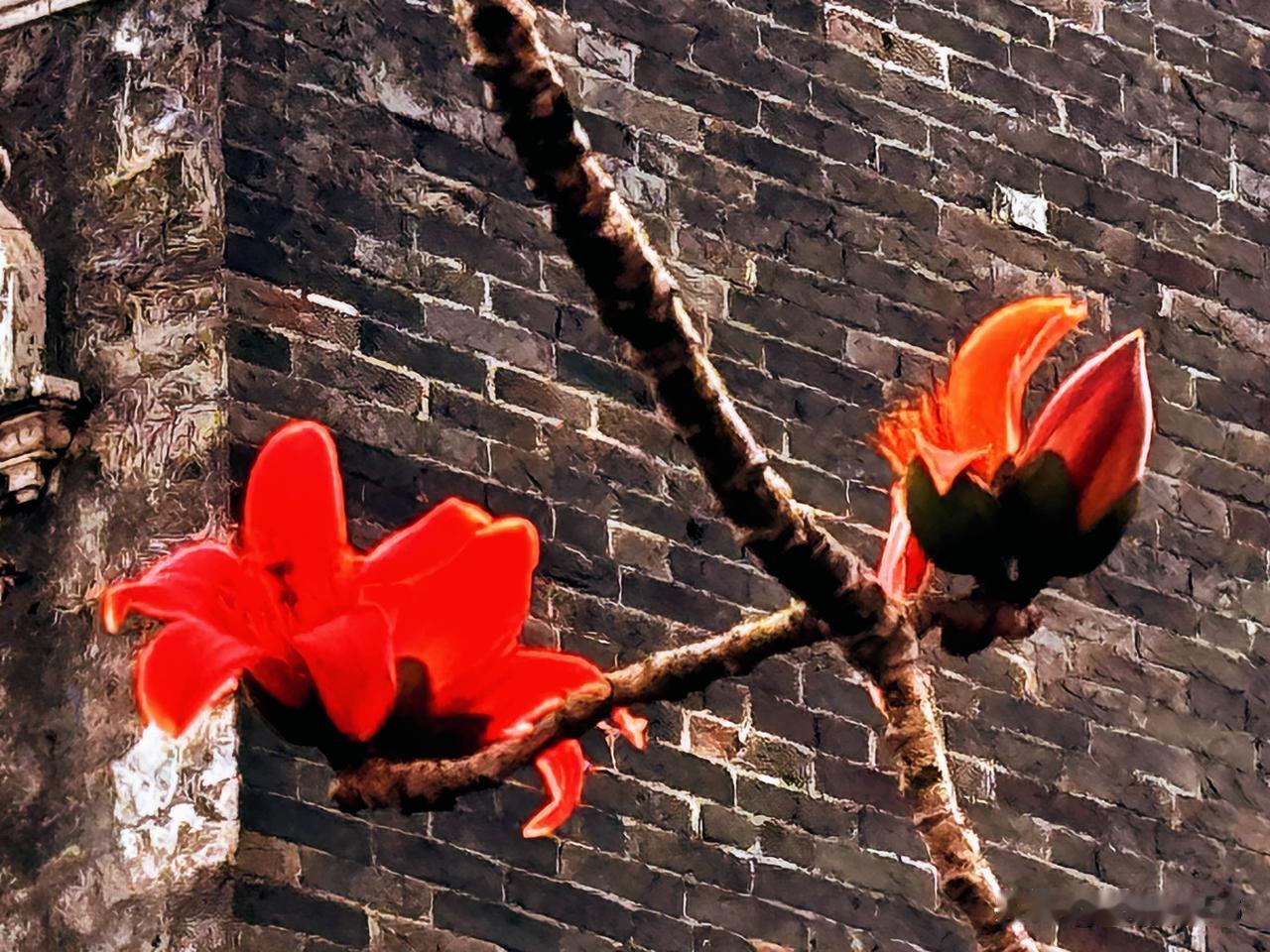 【钦州老街红棉花】:红棉花以云霞般的赤热,整朵整朵地坠落,融入屋檐下升腾的温热人间烟火。(2026.2.27)