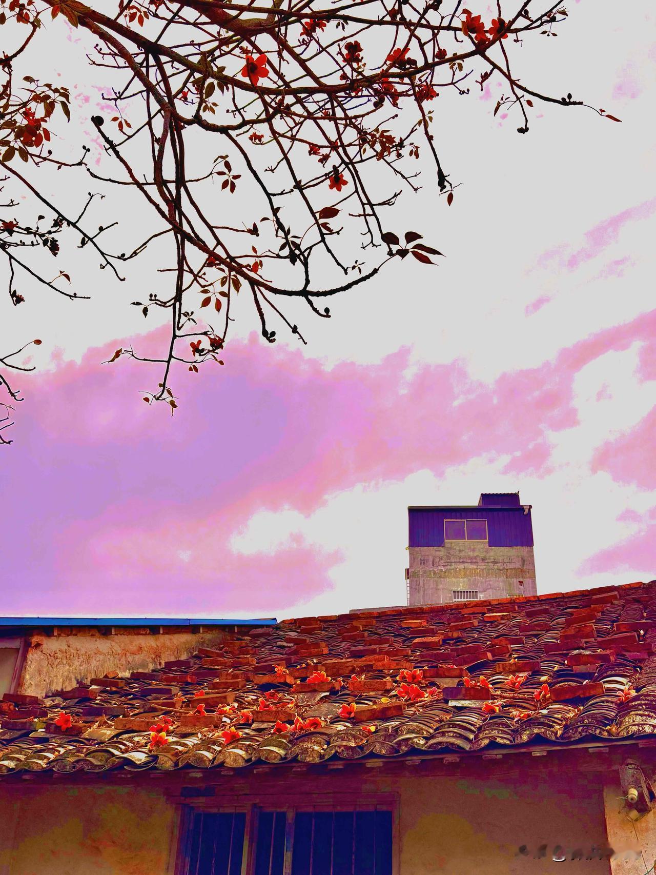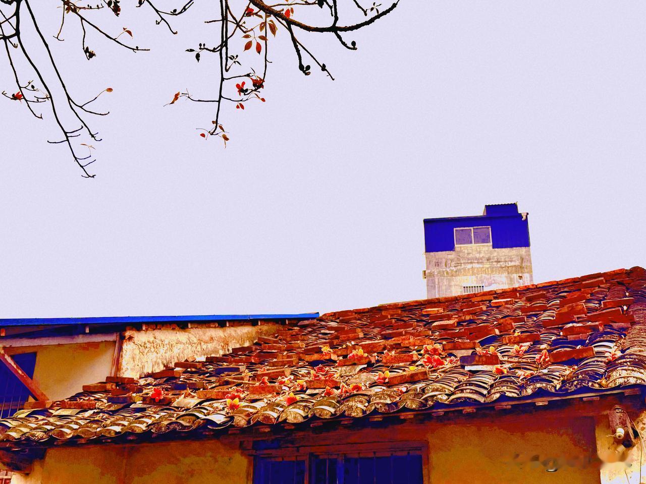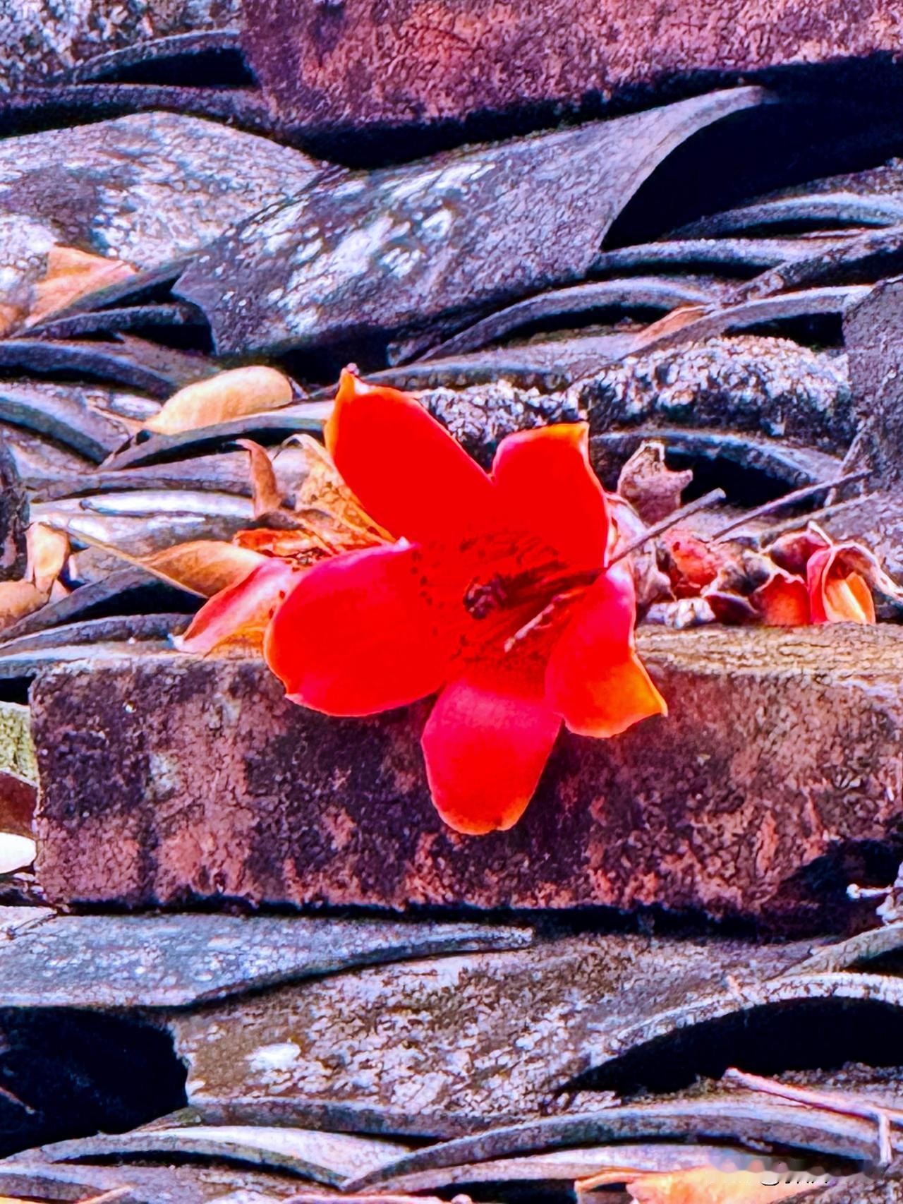 【钦州老街红棉花】:红棉花以云霞般的赤热,整朵整朵地坠落,融入屋檐下升腾的温热人间烟火。(2026.2.27)
