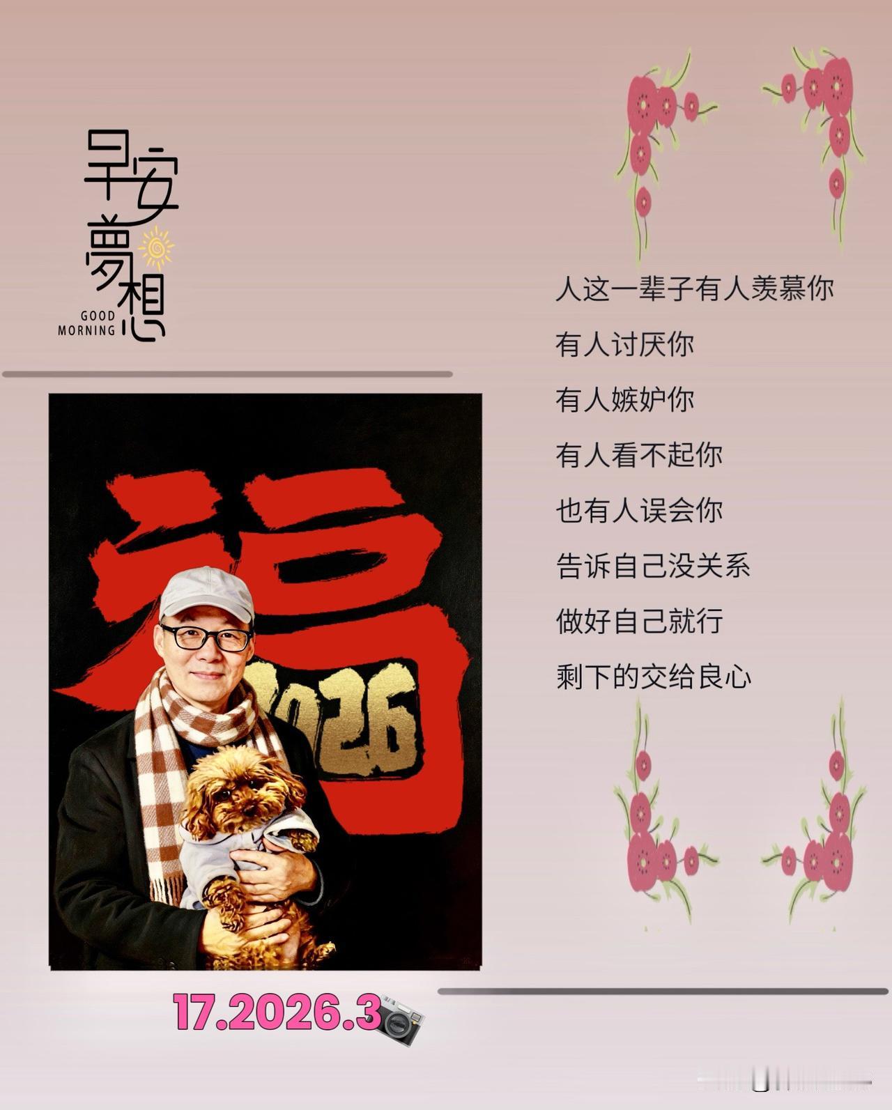 人这一辈子:有人羡慕你,有人讨厌你,有人嫉妒你,有人看不起你,也有人误会你,告诉自己没关系做好自己就行,剩下的交给良心。(2026.3.18)分享每天美好时光 生活碎片随笔 分享你的今日随笔