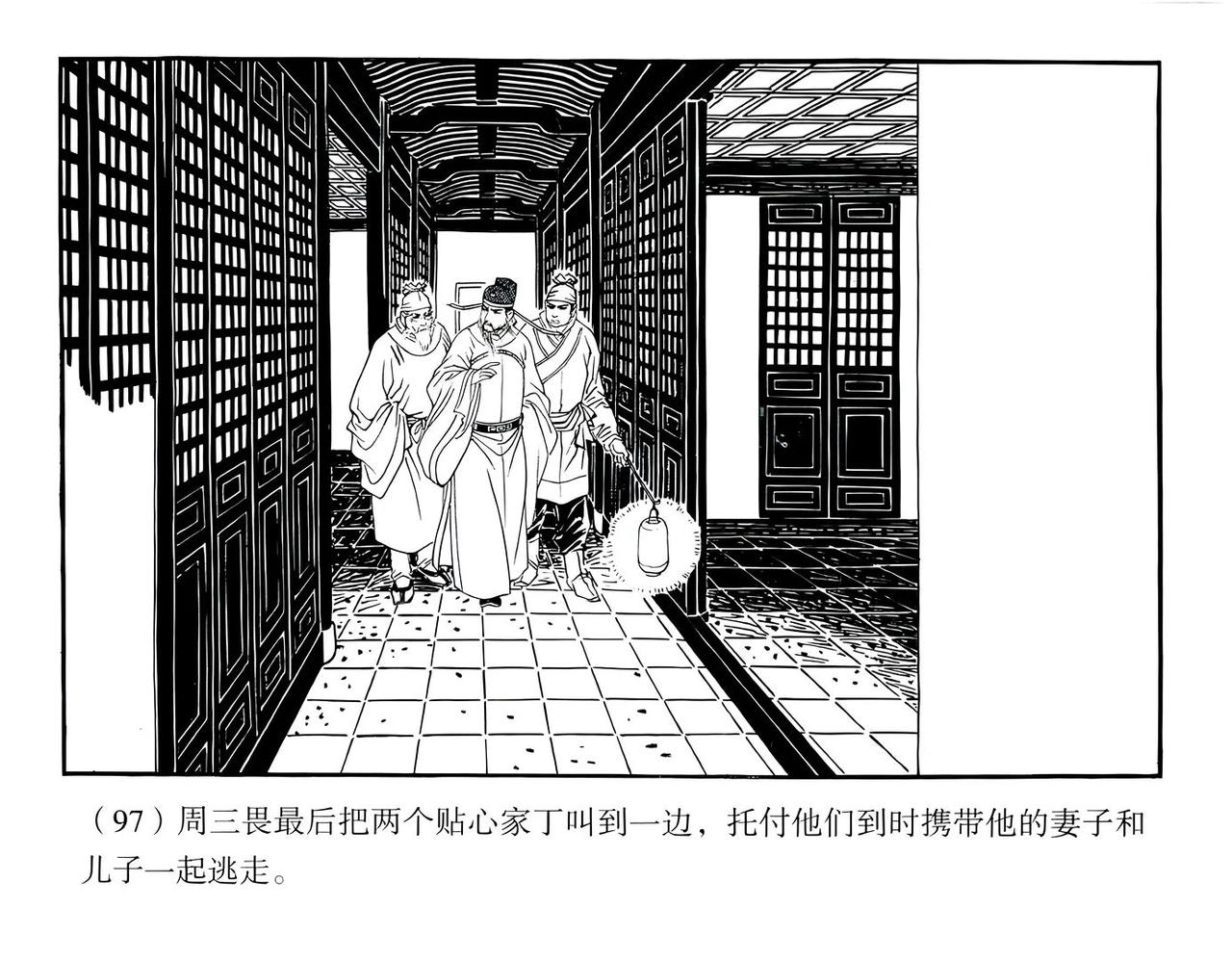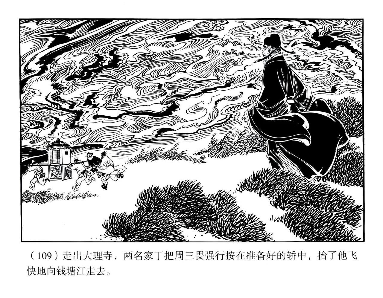 构图和留白的美学意境,疏可走马、密不透风,《周三畏挂冠》是戴宏海绘制的连环画作品,浙江人民美术出版社1984年首次出版。