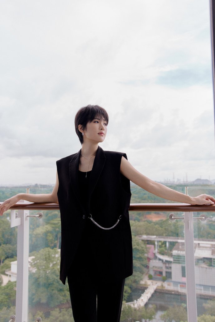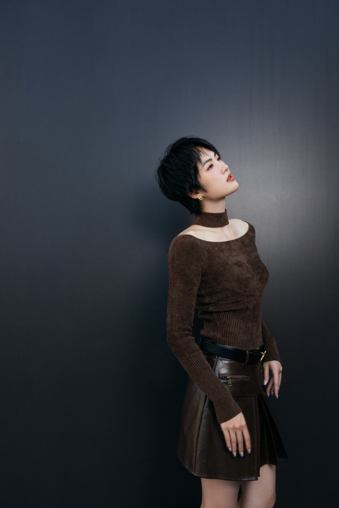 姚安娜黑色皮衣机车造型 安娜机车风直接帅哭我!黑色皮衣穿出霸道酷姐感,片场偷偷r