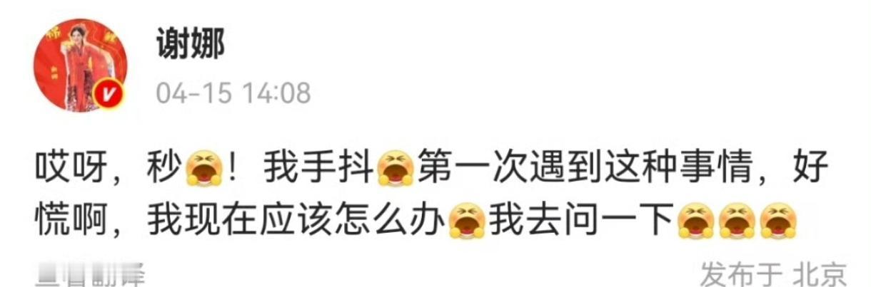 谢娜演唱会门票1分钟售罄,她激动到手抖,发文问大家该怎么办。