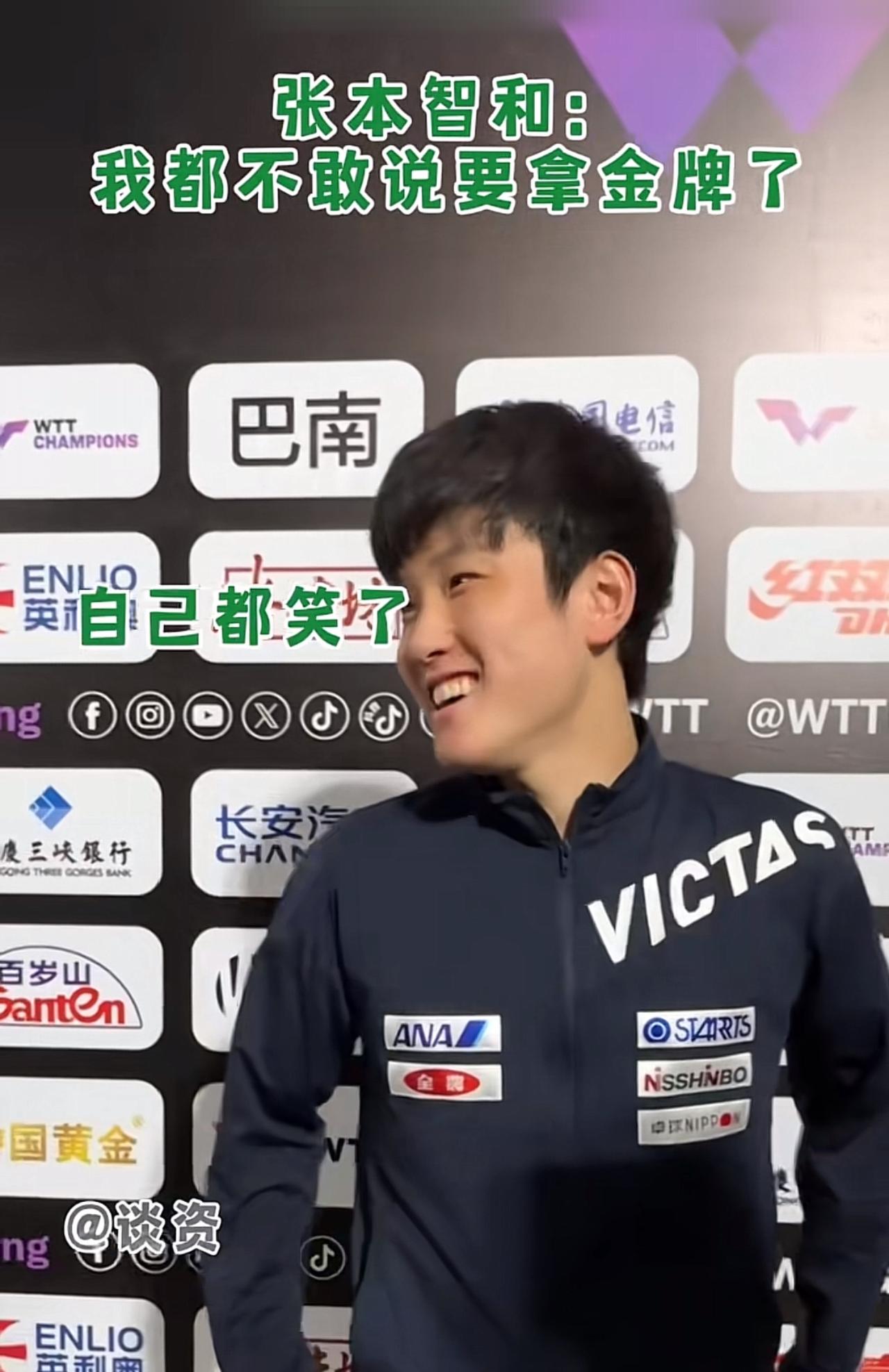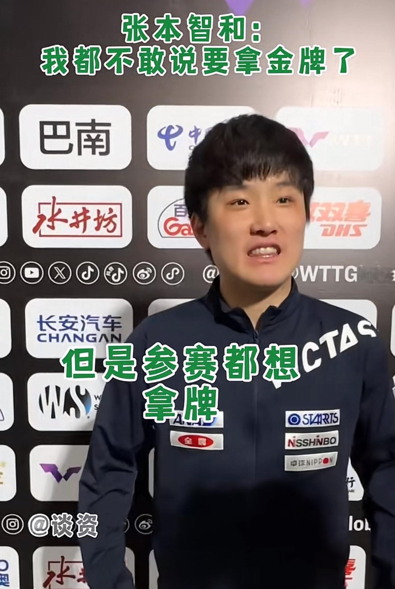 看了一个张本智和的采访,感觉这小孩还挺可爱的。记者问他:“你参加奥运会的目标不会改变吧?”他说:“我要说拿金牌,肯定又会被骂,可是参加比赛,谁不想拿牌呢?”可以看出他的坦诚和无奈。