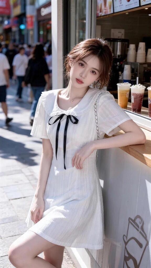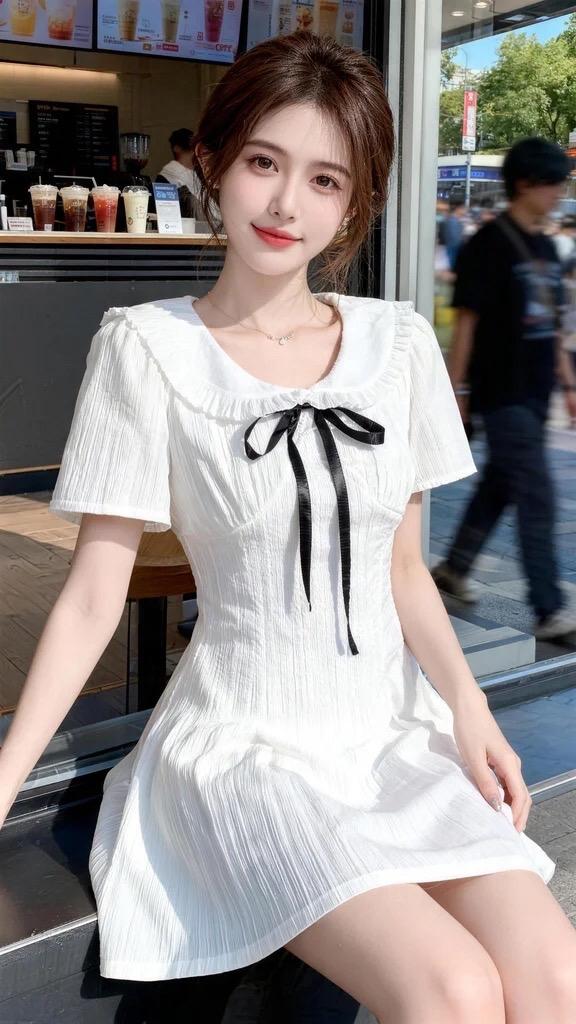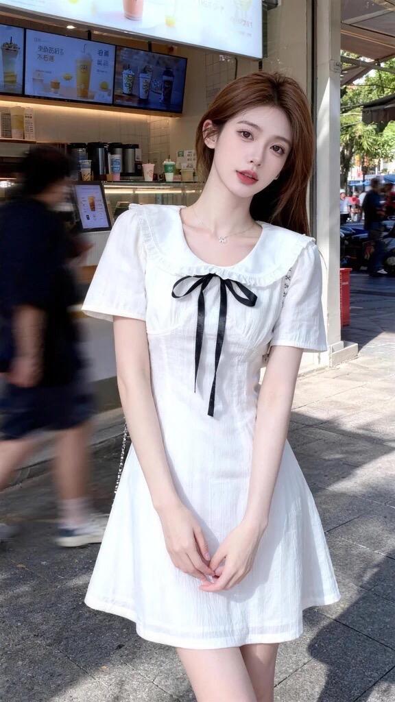 超美的甜妹穿搭分享 蝴蝶结设计连衣裙 夏日穿搭白色连衣裙 街头甜心风 甜妹小白裙