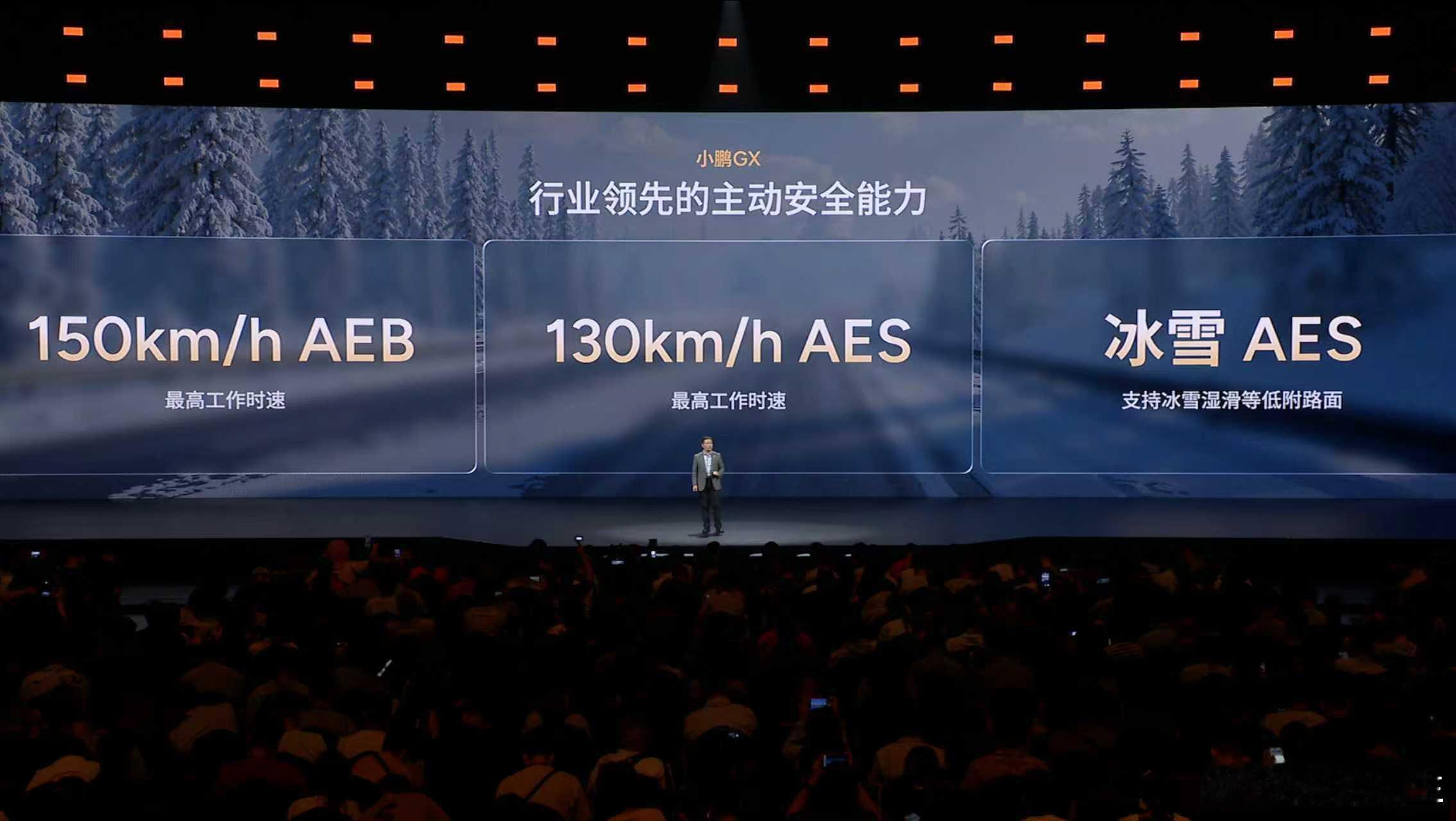 小鹏GX,搭载行业领先的主动安全能力,通过智驾技术在安全领域的延伸,再次突破行业上限,支持150km/h AEB紧急制动和130km/h AES紧急避让,支持冰雪湿滑等低附着路面的冰雪AES,出行更安全。