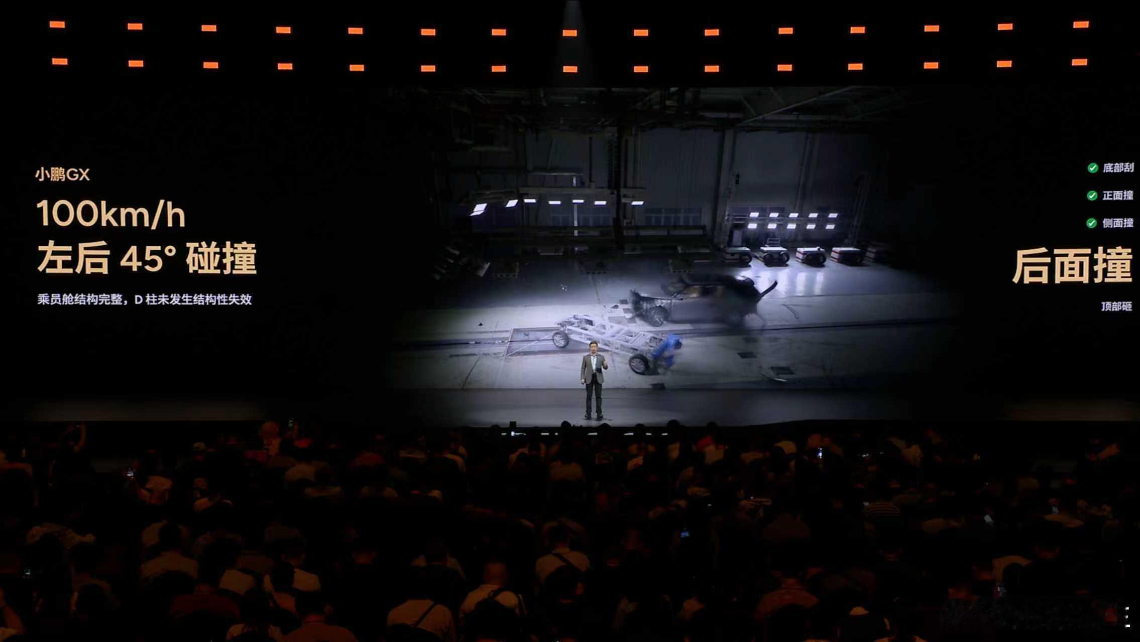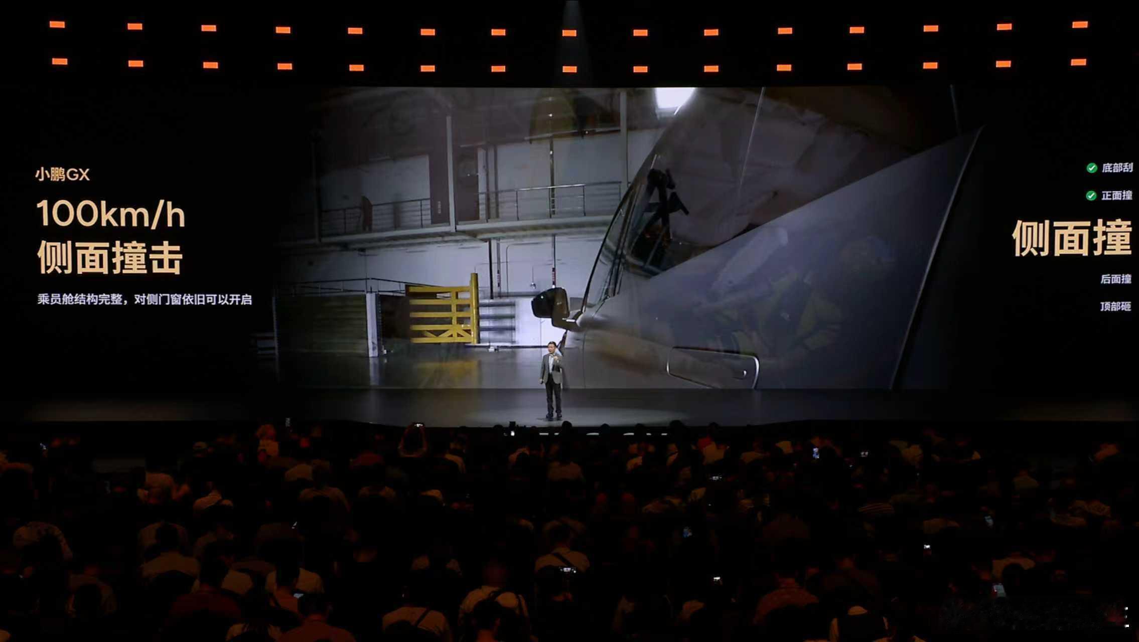 何小鹏称GX上下前后左右都抗撞小鹏GX,以三大旗舰安全体系,打造名副其实的安全新旗舰。全域冗余安全打造新旗舰标准,构建被动安全、主动安全、航空级冗余安全三大安全体系,构成从被动防撞,主动避让和避免失控的全链路安全保障。小鹏GX把四大安全测试场搬到发布会