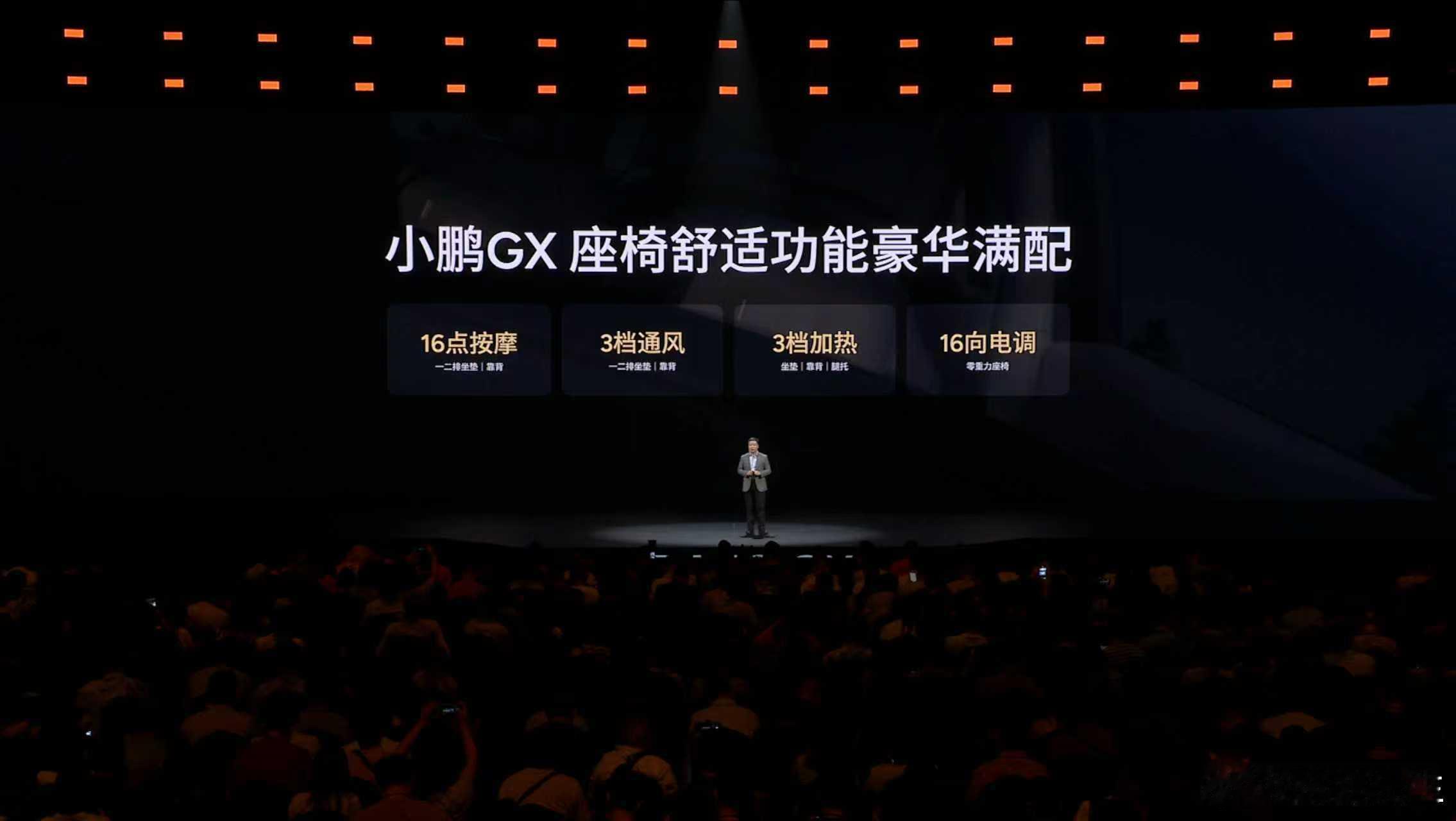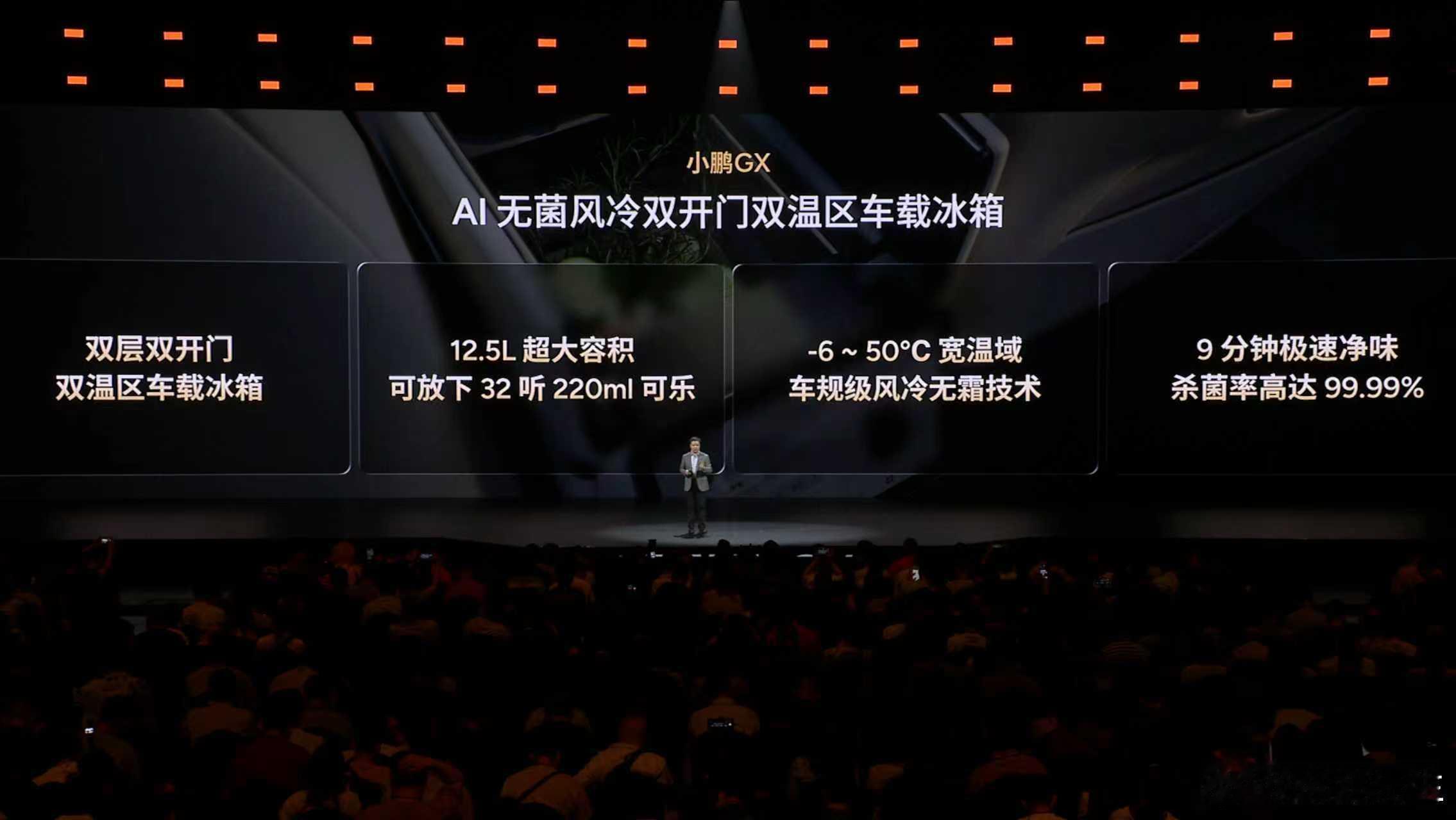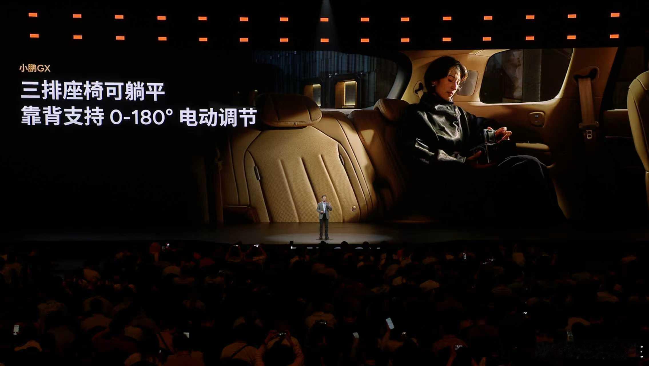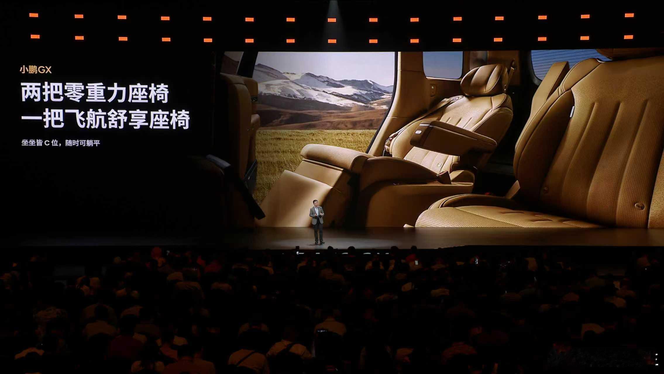 小鹏GX,拥有全套智能家居的家庭新旗舰,打造全座舱沉浸式舒适体验。- 全球首发AI调光隐私玻璃,带来前所未有的智能隐私体验;- 全球首发AI无菌风冷双开门车载冰箱,告别小、冷、臭,把顶级的健康保鲜冰箱搬进车里;- 21.4英寸3K护眼大屏+全车33颗扬声器聆境音响,顶级影音享受;- 行业首发整车空调柔风系统,风感更柔和,体感更舒适;- “座座皆C位、排排可躺平”,全球唯一三排电动三折叠大六座SUV,满足全场景用车需求。- 两把零重力座椅+一把飞航舒享座椅,公务舱一样的极致享受;- 第三排支持50:50独立收纳:超级大四座,塞下2辆24寸和2 辆20寸自行车;超级大五座,竖放5个高尔夫球包;超级大六座,每人可带专属24寸行李箱。- 同级最大后备箱:673L同级最大容积、1251mm同级最大后备箱开口宽度、同级最低地台,大件物品轻松装,拿取重物不费力。