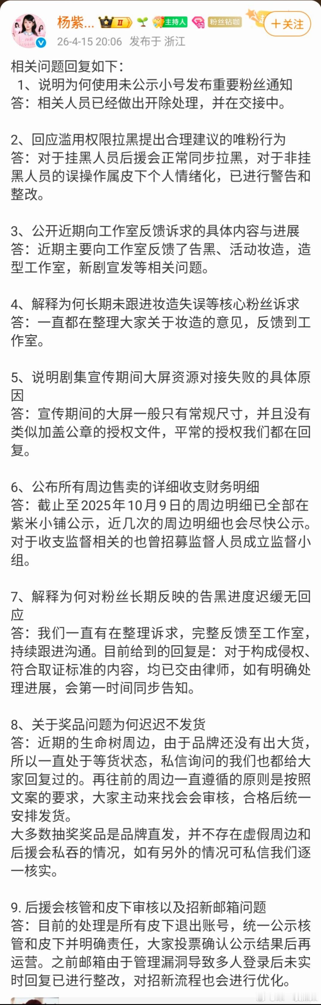 杨紫官方后援会致歉了,并回复了相关问题话说发生了什么