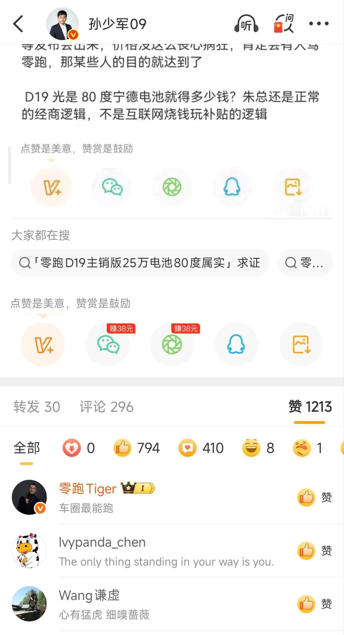 更耐人寻味的是,零跑高管还点赞了孙少军关于价格预测的微博,这种微妙的互动是不是代表他猜中了官方的价位?如果这个猜测成真,那么D19在二十多万这个中高位段,非常具有市场竞争力。