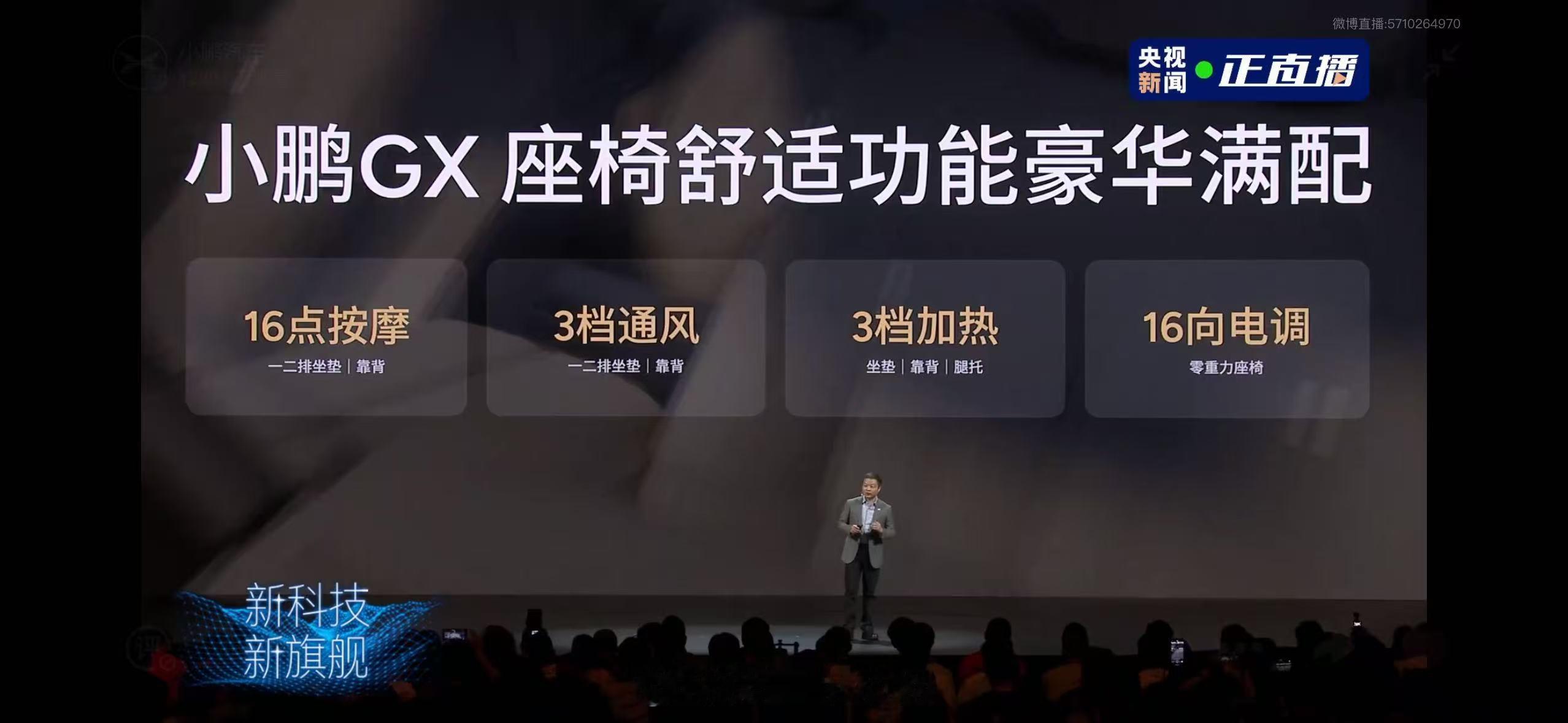 小鹏GX 2+2+2六座布局,“座座皆C位,排排可躺平”。第三排支持0-180°电动躺平和5/5独立电动收纳,大四座模式最大拓展空间1748L,能装下4人+4台自行车。二排两把零重力座椅+飞航舒享座椅,全车Nappa真皮、16点按摩、通风加热一应俱全