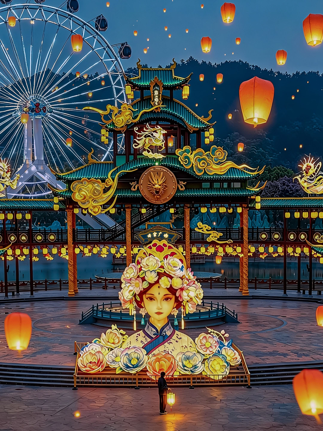 在云宫广场大家一起放飞孔明灯、真的好浪漫,同时这里还有敦煌飞天赋的精彩演绎