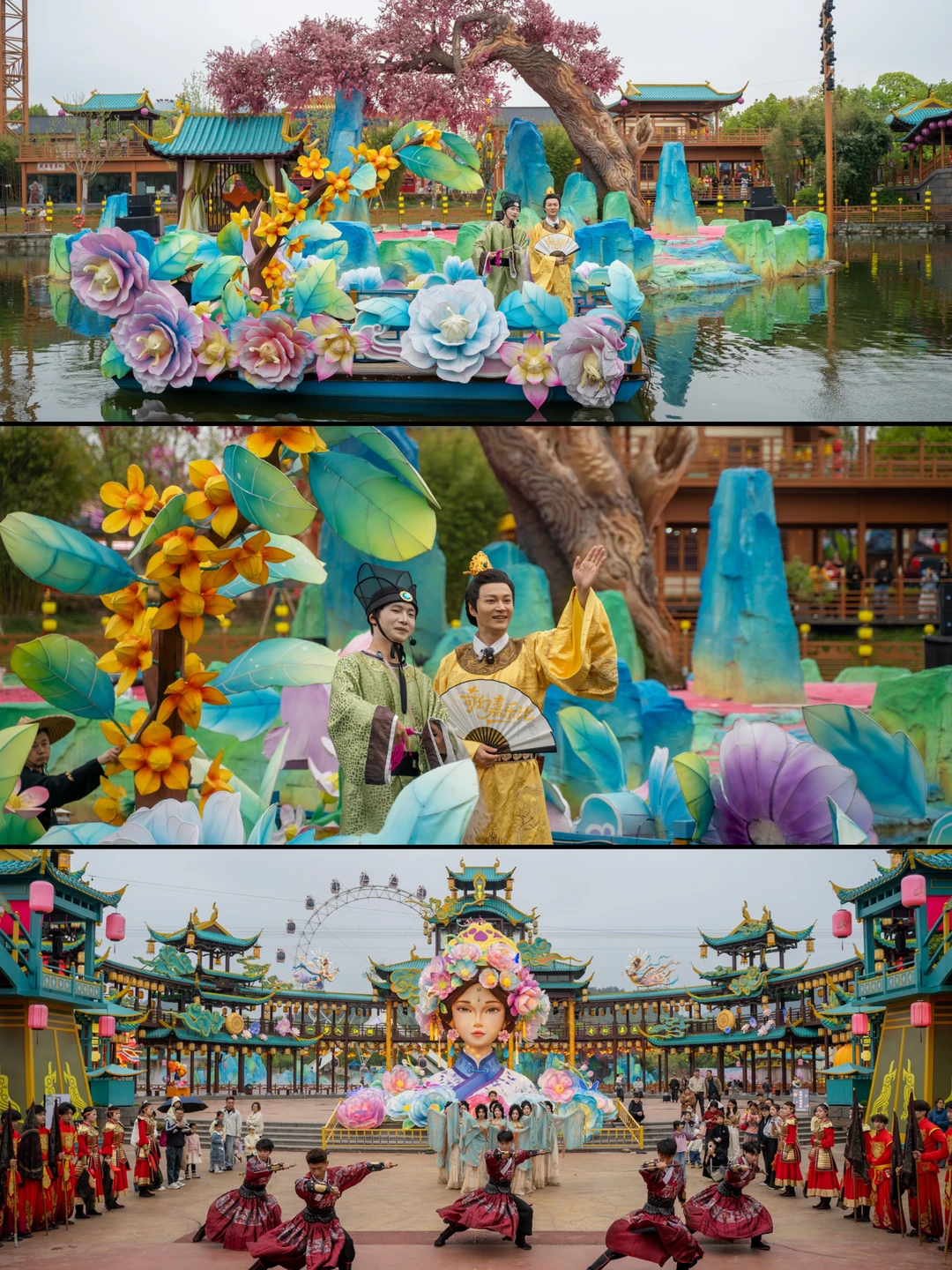 仙女从天而降、一边飞舞一边洒落花瓣,仿佛来到了“瑶池仙境”