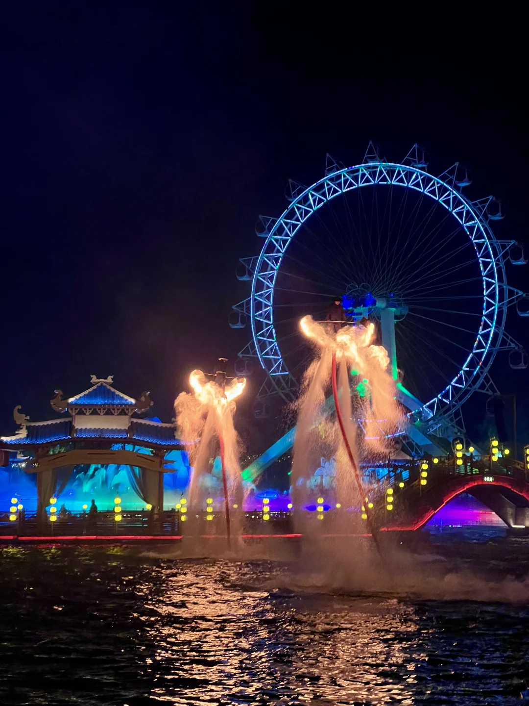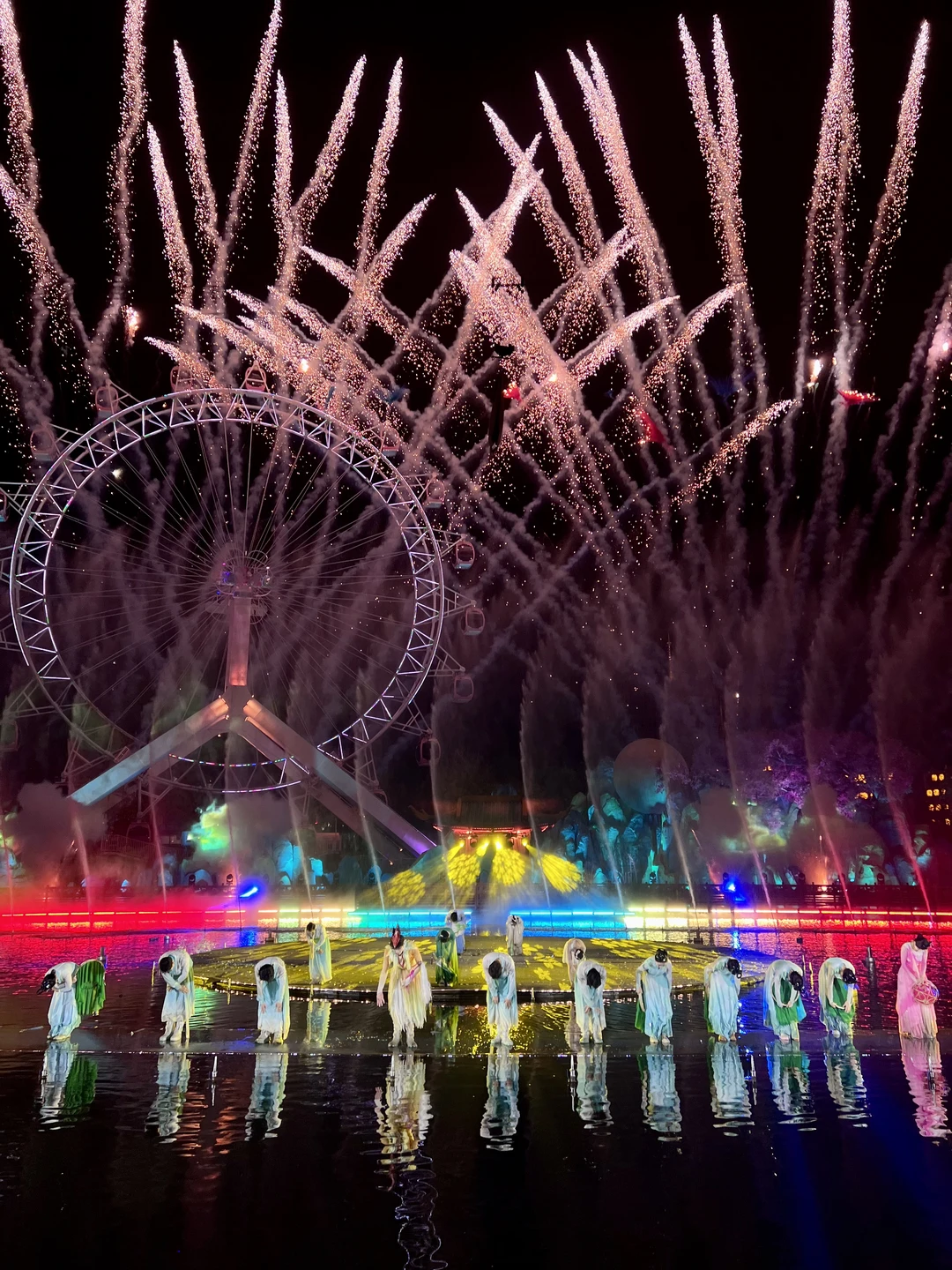水幕加上灯光如梦似幻、讲述白蛇传说,结尾的七彩祥云烟花太震撼了