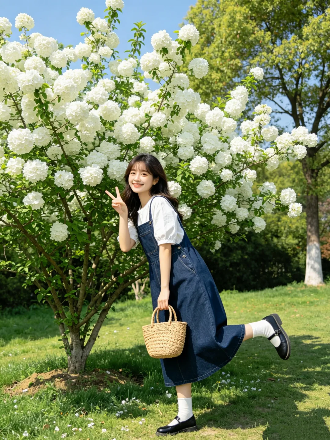 拥抱春天的一百种方式 春天就要逛公园 温柔穿搭风 牛仔背带裙 牛仔正当时 文艺风穿搭 ootd穿搭