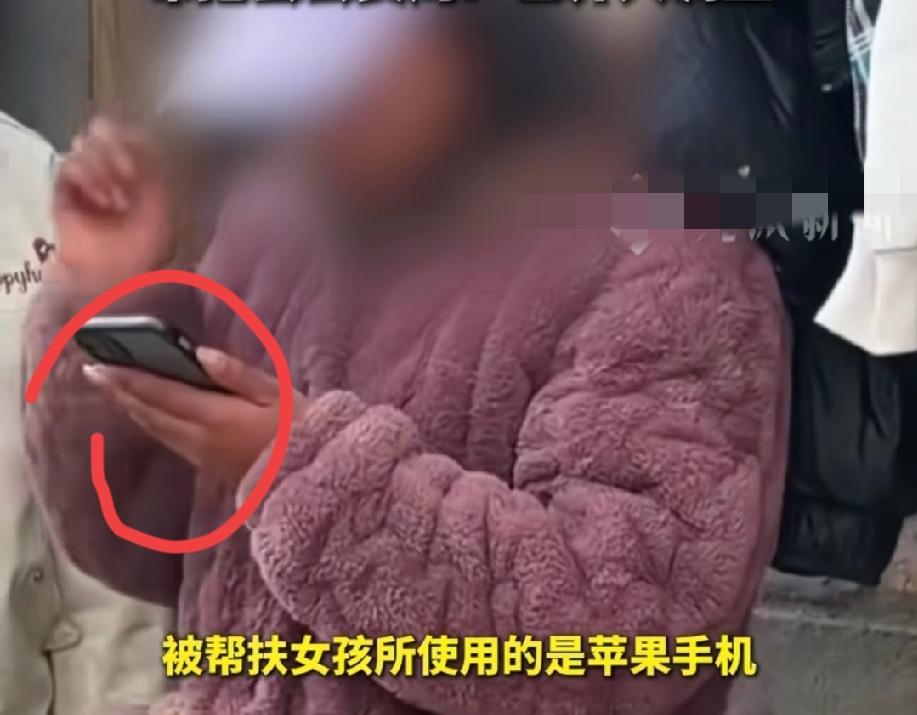 有细心的网友还发现被帮扶的女孩用的P果手机,做了美甲,这还是穷苦人家的标配吗?