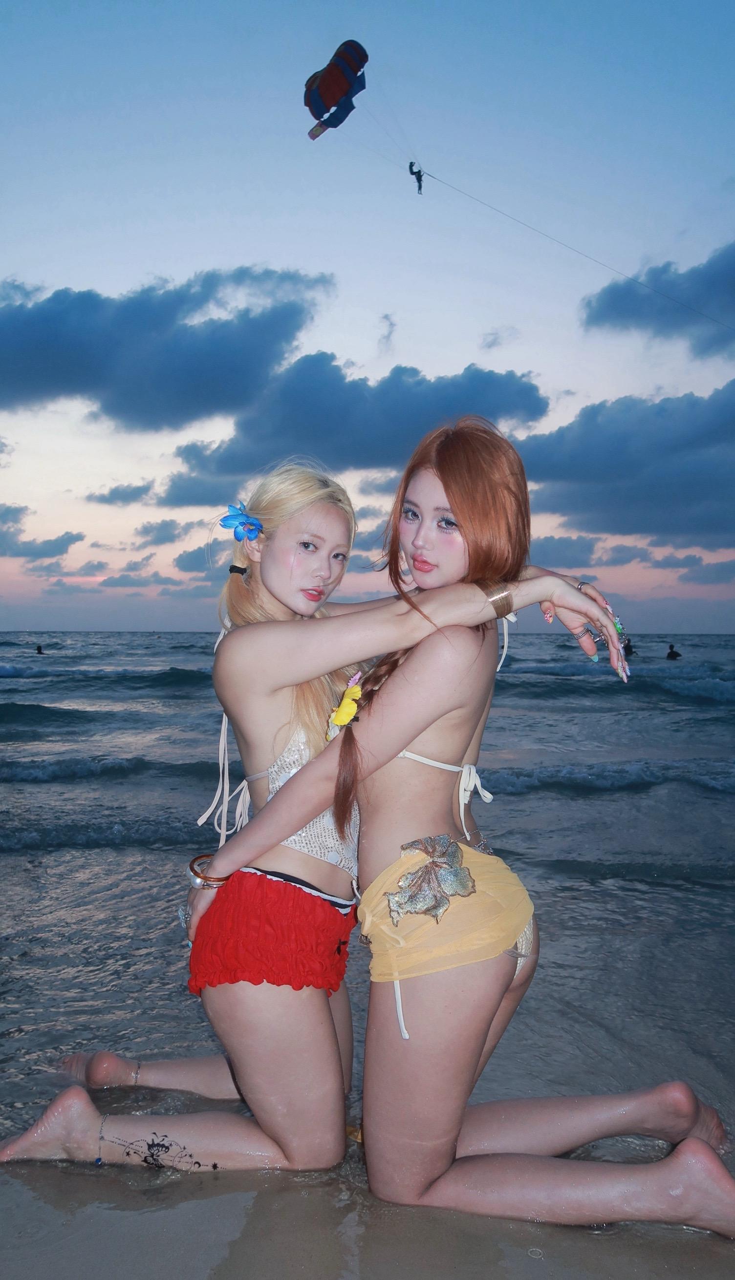 海边闺蜜穿搭 海边双人穿搭 海边日落cp 和好朋友就这样拍