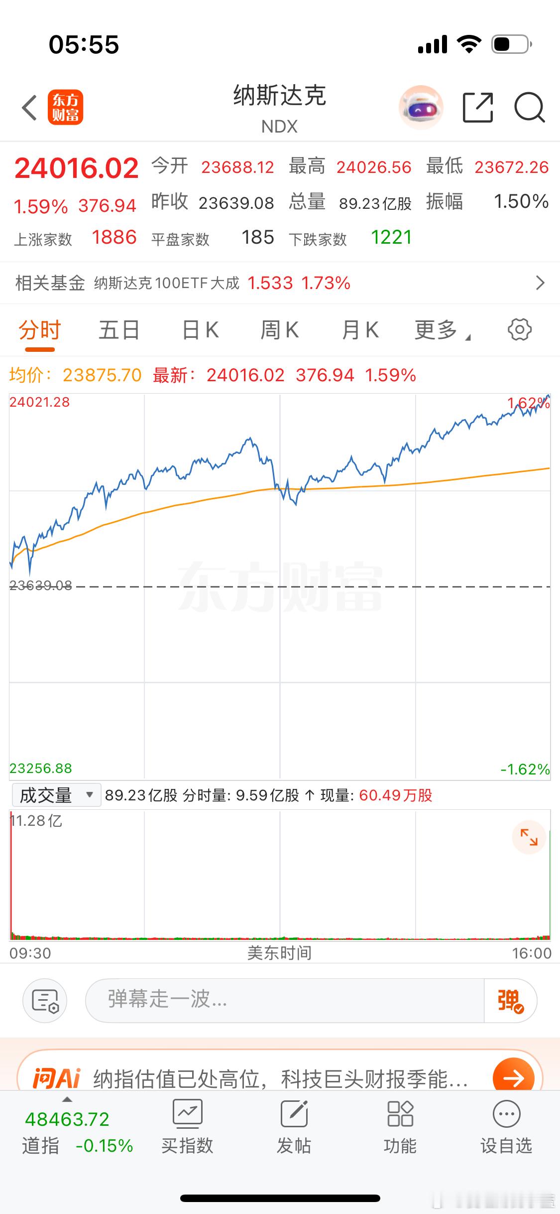 纳斯达克又大涨1.59高开高走11连阳。