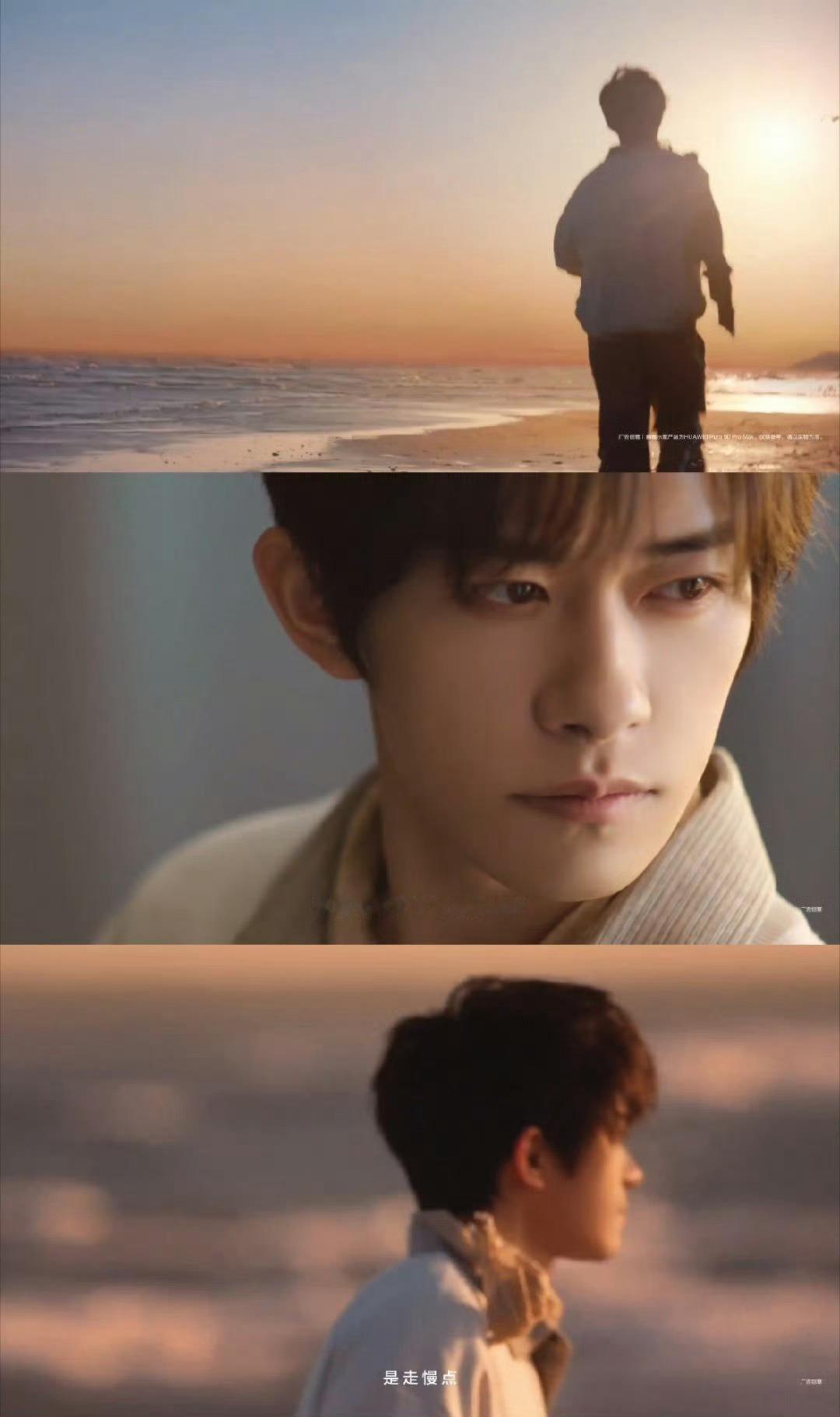 易烊千玺海边度假松弛感易烊千玺橘子海边度假橘子海落日与少年同框,V领衬衫搭配热气