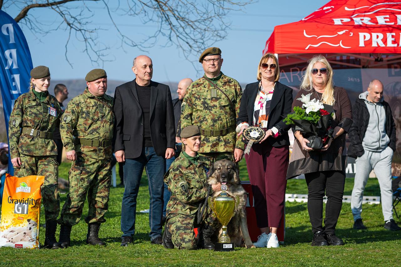 一只塞尔维亚军犬获得塞尔维亚全国沙尔山脉牧羊犬锦标赛的冠军,它不光被颁授奖杯金牌,还额外得到一口袋狗粮作为奖赏。沙尔山脉牧羊犬是塞尔维亚的传统犬种,以前也被称为南斯拉夫牧羊犬。这种牧羊犬体格强壮、骨骼粗大,眼神沉稳警觉,天生具有强烈的领地意识和独立判断能力,对陌生人高度警惕,但对主人极为忠诚 。
