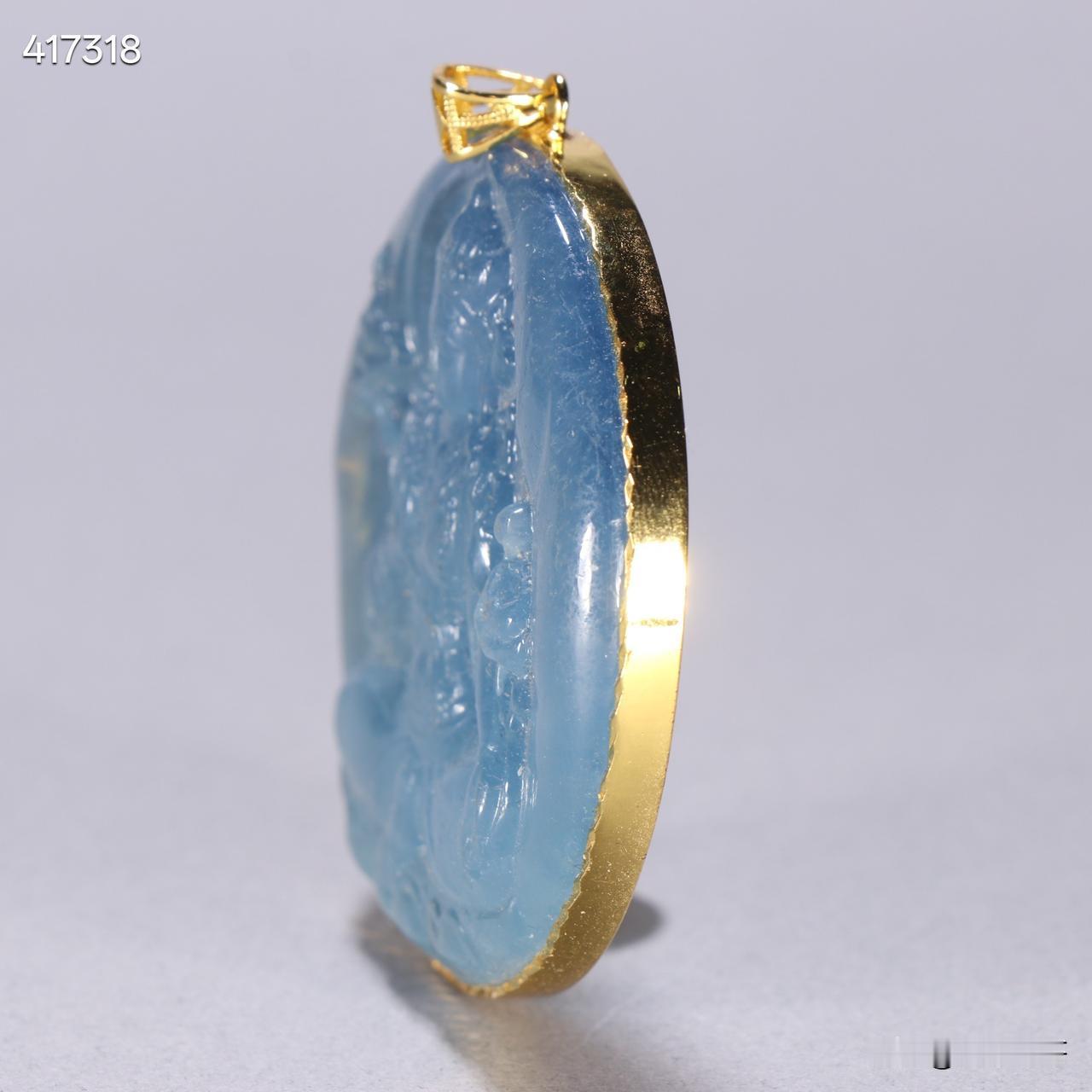 海蓝宝包金黄财神挂坠 规格∶高5.6cm宽5.3cm重41.9g