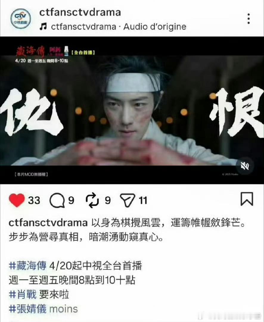 肖战《藏海传》4.20起上星台湾中视黄金档,有效出圈!
