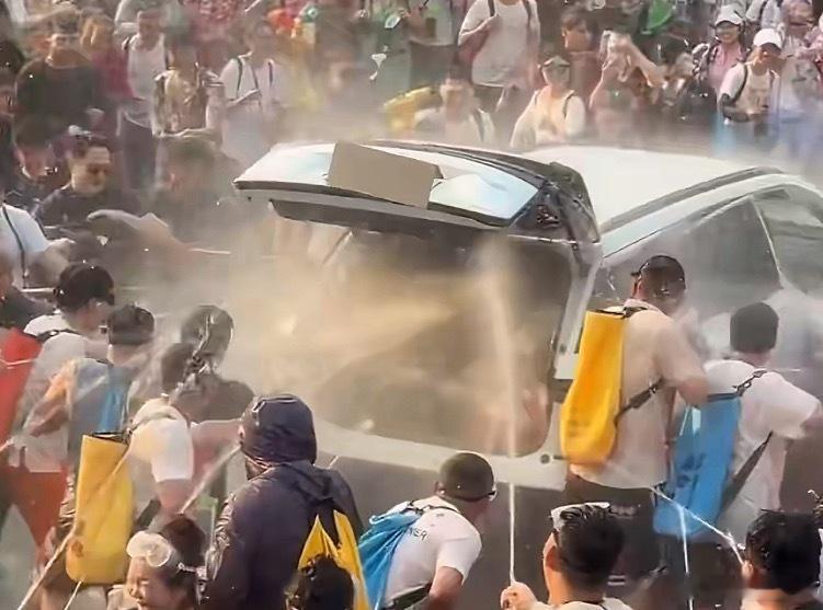 女子回应泼水节多人向车内喷水这根本不是现场的热情游客…应该叫坏种这个拉开后备箱的