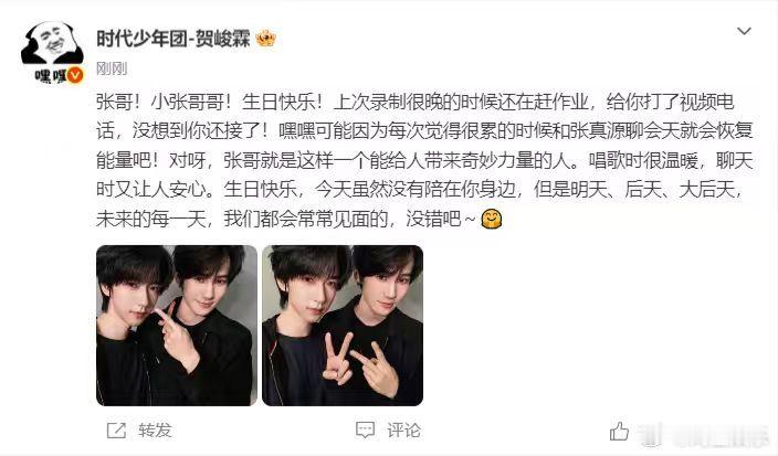贺峻霖说和张真源聊会天会恢复能量贺峻霖晒合照给张真源庆生贺峻霖晒合照给张真源庆生