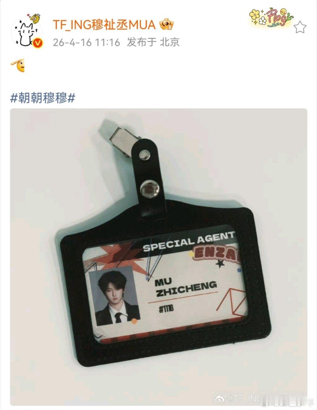 穆祉丞晒工作牌穆祉丞卡点1116发博穆祉丞卡点更博晒工作牌,新公式照五官精致气质