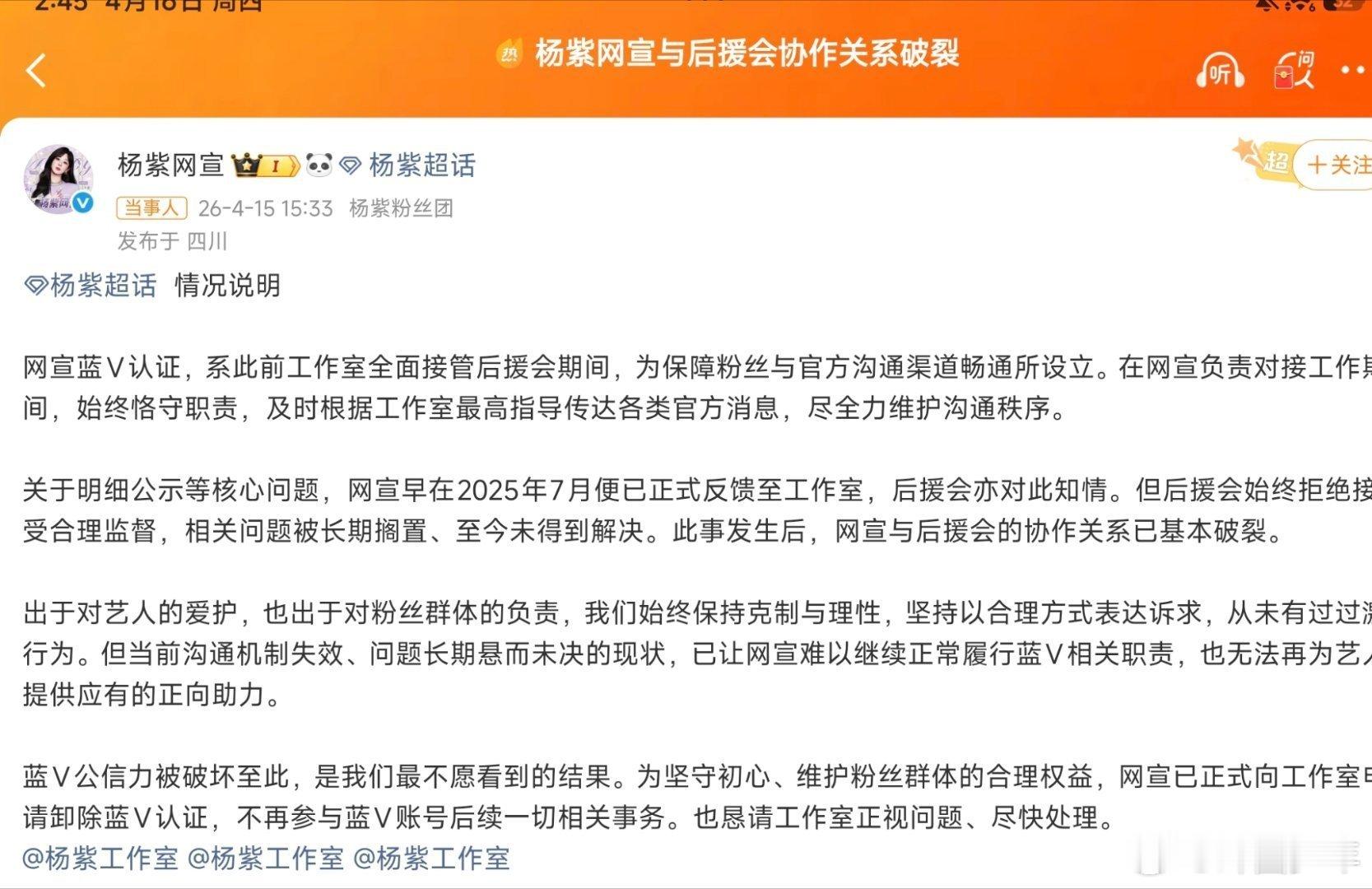 后援会向杨紫和紫米们道歉针对相关争议,杨紫后援会发布声明致歉,决定解散重组,粉丝