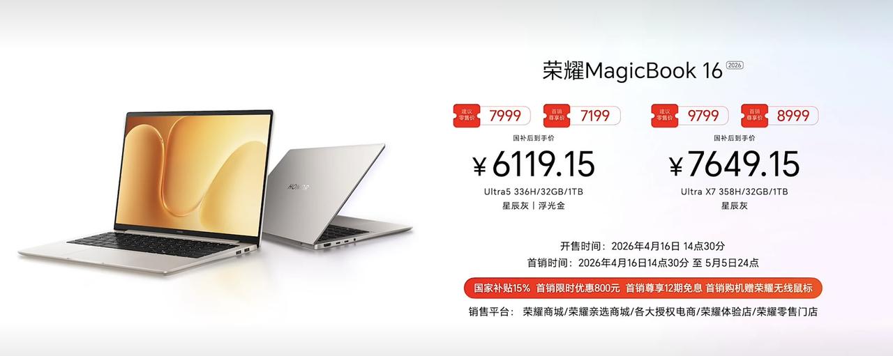 荣耀MagicBook数字系列价格来了。你觉得如何?