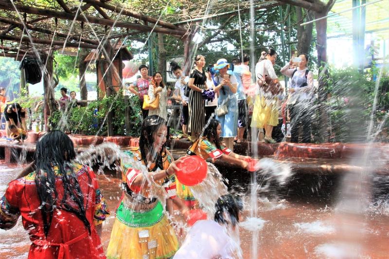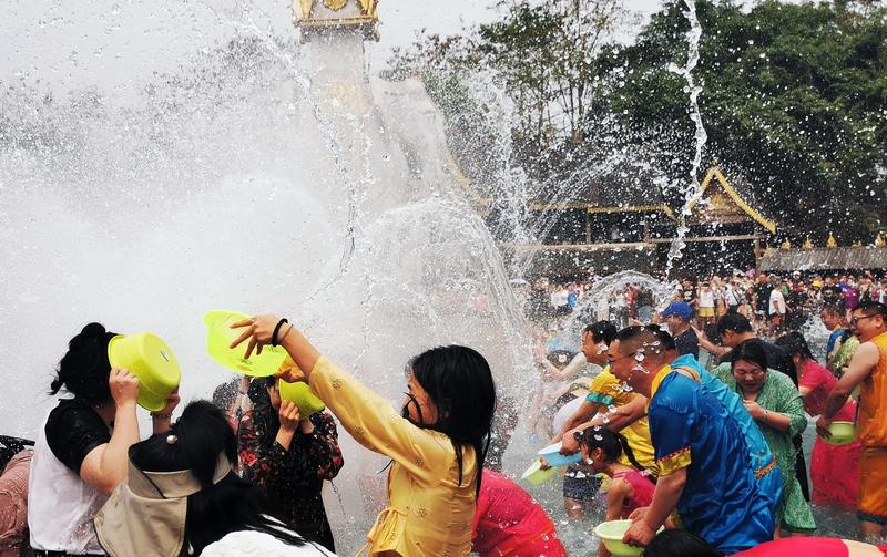 西双版纳泼水节游客疯狂“洗警” 西双版纳4月15日傣历1388年泼水节,数万名游客和当地群众狂欢,执勤民警成了全场焦点。主持人按衣服颜色分批泼水时,穿蓝色制服的民警瞬间被“围攻”,个个湿透却笑容满面。有的民警还带上水枪边执勤边“参战”。