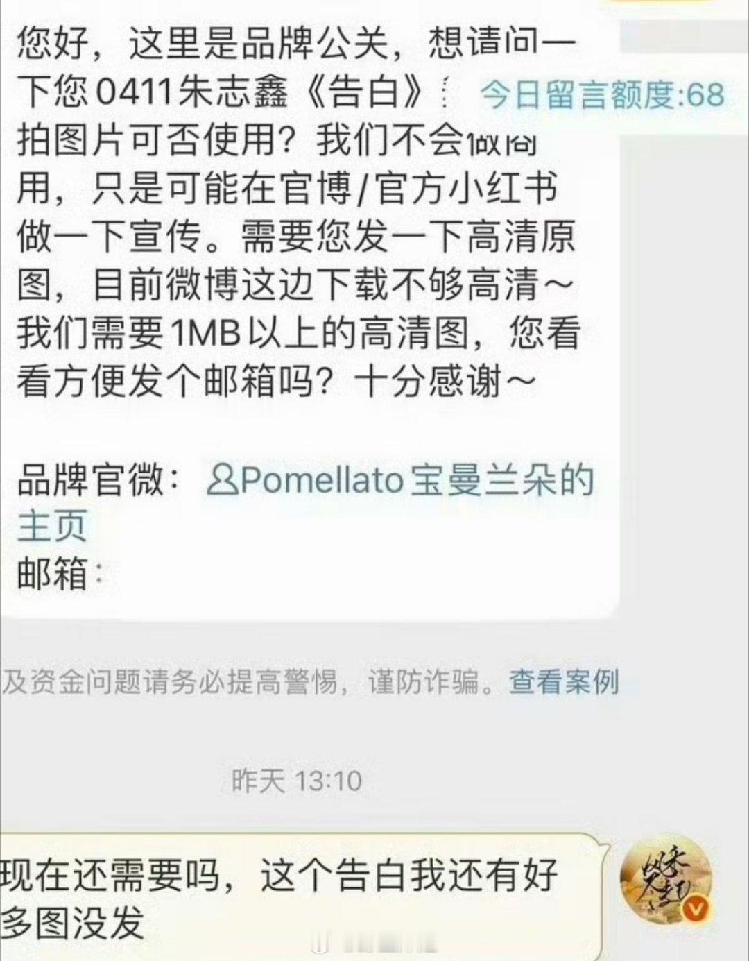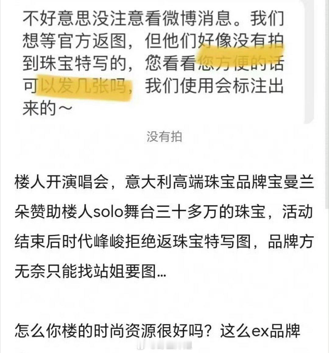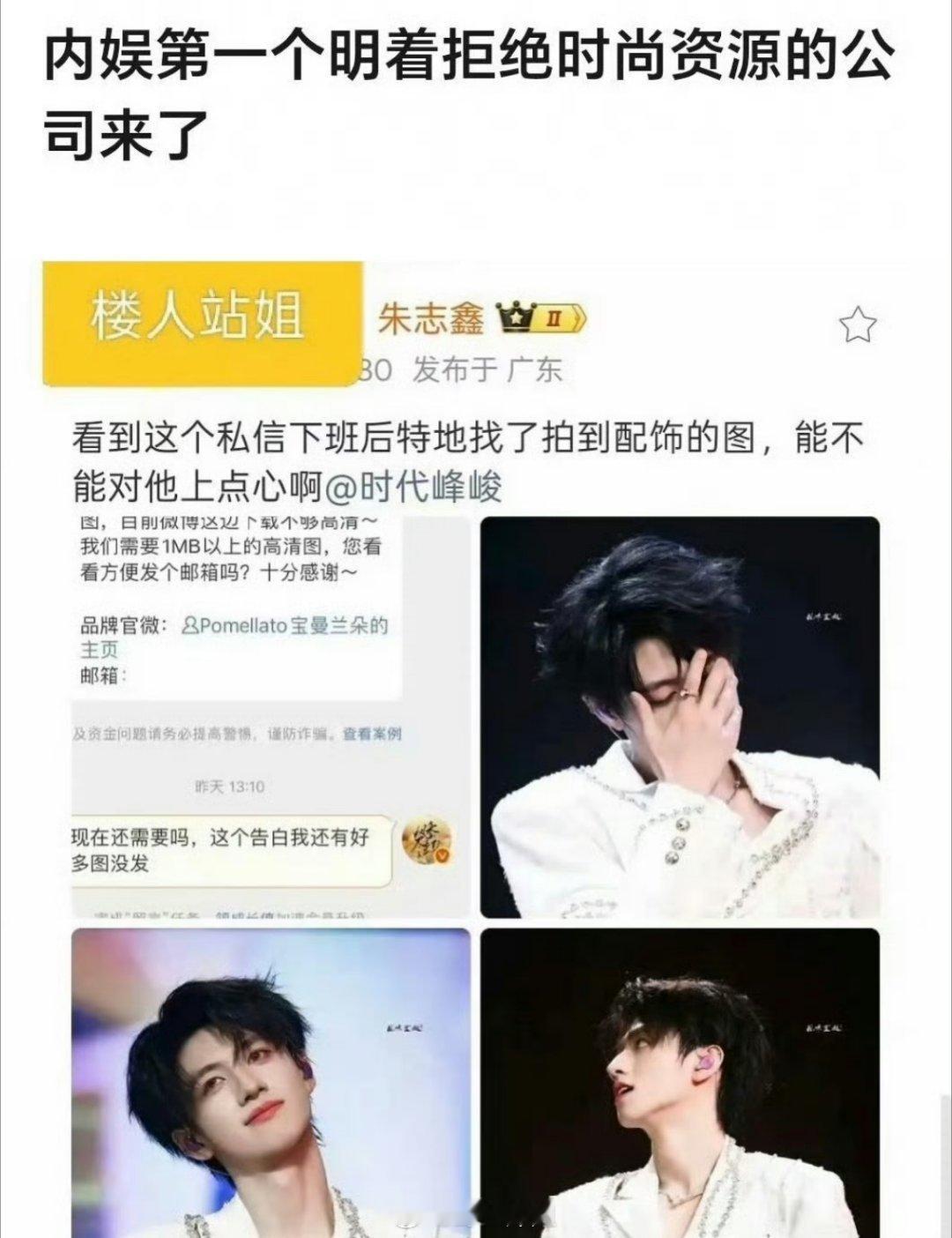 珠宝品牌宝曼兰朵想使用朱志鑫特写图做宣传,但发现时代峰峻好像没出图,所以只能找站姐要图