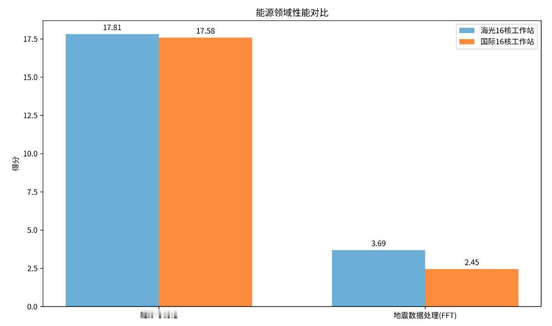 在能源领域的能源可视化测试中,国产平台得分17.81,国外平台17.58,两者基本持平。而在更考验计算能力的地震数据处理(FFT)测试中,国产平台得分3.69,国外平台是2.45,国产领先幅度超过50%。这项测试直接关系到石油勘探中地震波数据的解析速度,更快的计算意味着更早发现油藏、更低的勘探成本。