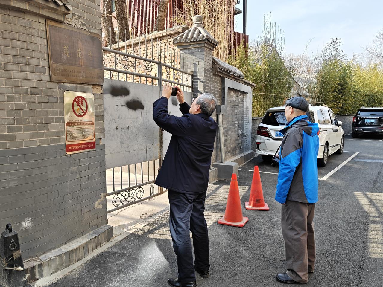 今日下午,《牛街志》编辑部的几位同仁,陪着史志专家张老师,对湖南会馆、圣安寺和莲花寺旧址、门楼巷展开了考察。